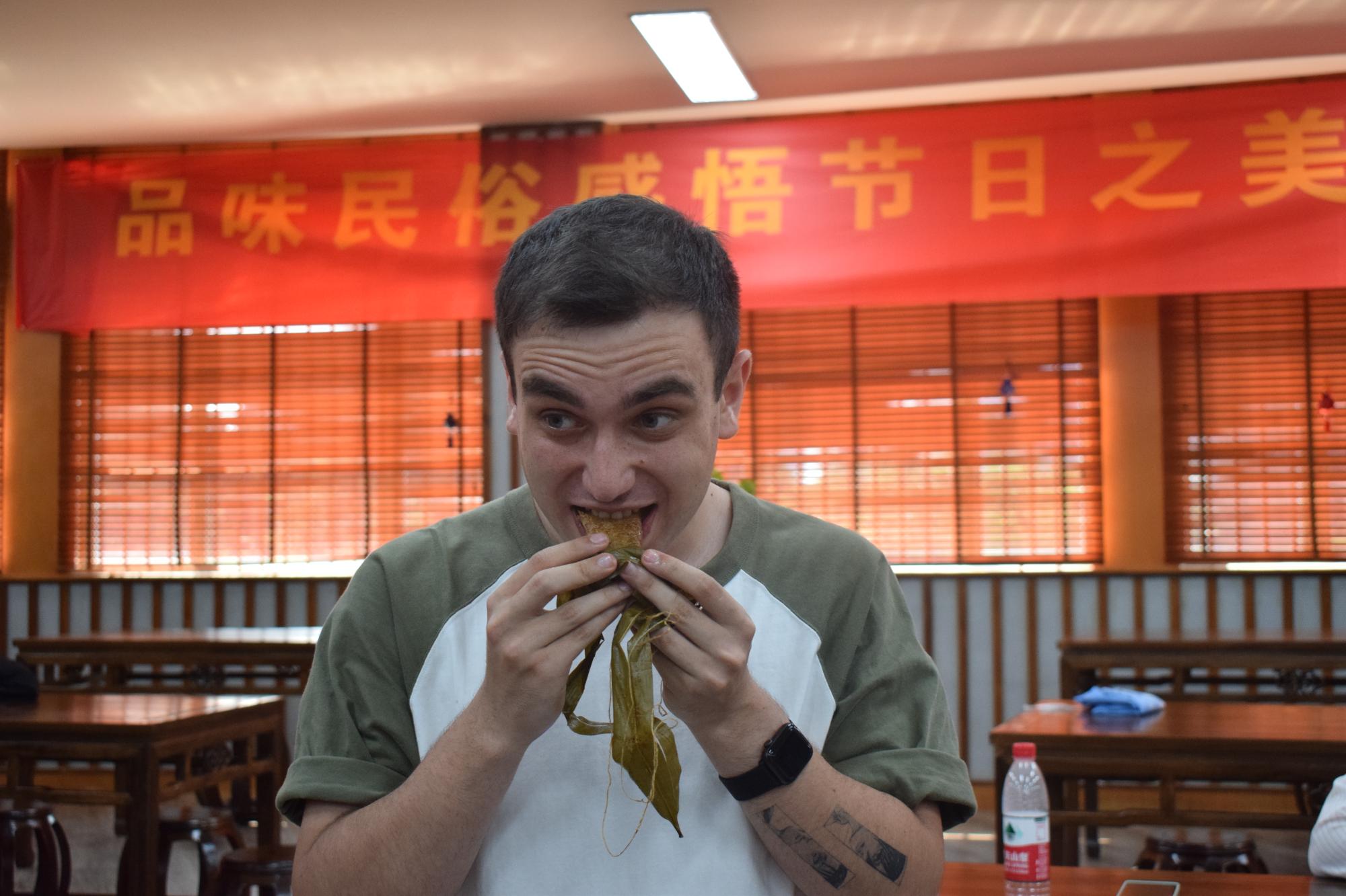 最后,大家共同品尝粽子、咸鸭蛋等端午美食。在享受劳动成果,品味端午味道的过程中,留学生们赞扬中华传统文化的丰富和有趣,来自俄罗斯的钱多多说:“中国的传统节日很多,是一个很有吸引力的国家,我很喜欢香囊和五彩绳,包粽子也很好玩。”