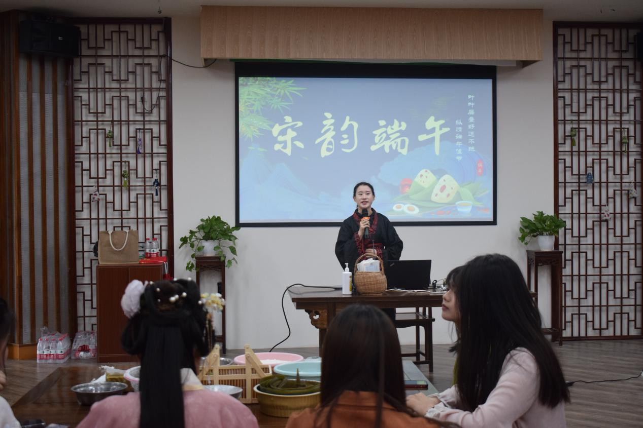 “轻汗微微透碧纨,明朝端午浴芳兰。”宋代诗人苏轼笔下的端午是悠闲、雅致、丰富多元的,而这恰是宋韵文化的一个特征。2022年5月31日,人文与传播学院第四党支部与国际学院党支部在人文与传播学院问津书院联合开展“品味民俗感悟节日之美·中外学子共寻宋韵风华—浓情端午”党日活动。支部全体成员与国际学院二十余名外教及留学生参加本次活动。