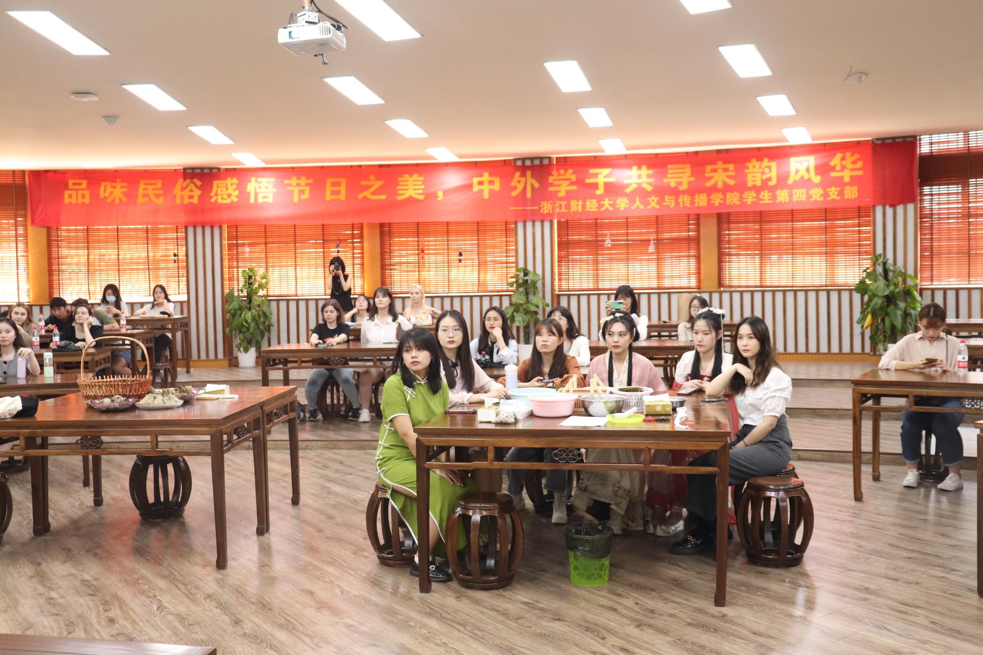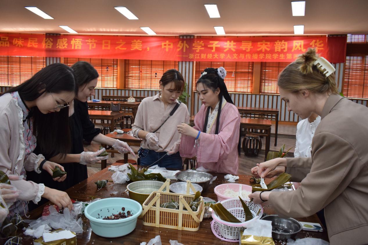 宋韵文化除了典雅敦厚的士大夫生活美学、丰富多元的市民生活,还包括浩然正气的爱国主义、以天下为己任的士大夫精神、经世致用的“浙学”思想等等内涵。浙江是南宋的都城,杭州是浙江的首府,具备如此之优势,作为研究生党员,我们应自觉挖掘、传扬宋韵文化。本次活动通过体验端午习俗,让中外学子浅尝了宋韵风华,一定程度上促进了中华优秀传统文化的传播,更加坚定了我们的文化自信。