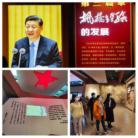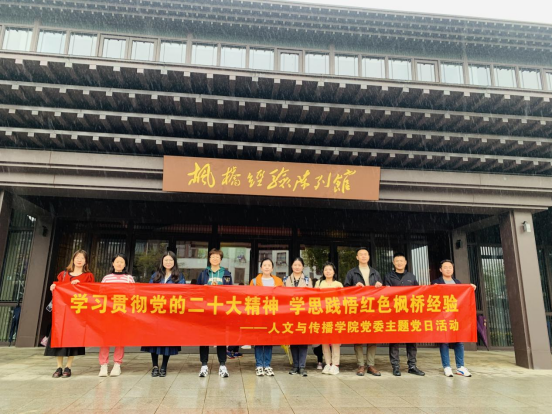 为深入学习贯彻党的二十大精神,重走习近平总书记足迹、11月19日下午,人文与传播学院组织学院党委委员、支部书记和教工党员代表赴诸暨市枫桥镇开展“枫桥经验”研学活动。