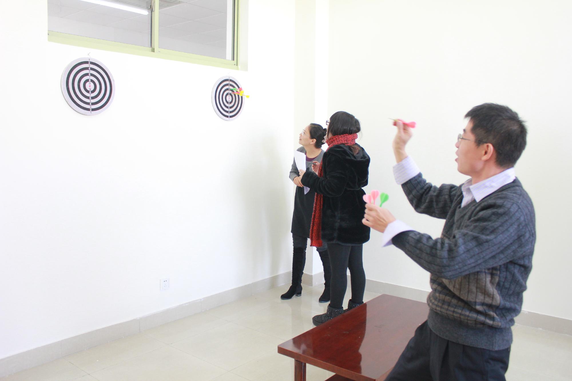 分别开展了以“单人跳绳”、“踢毽子”、“扔飞镖”三个项目为主的全体教职工健身健心活动。