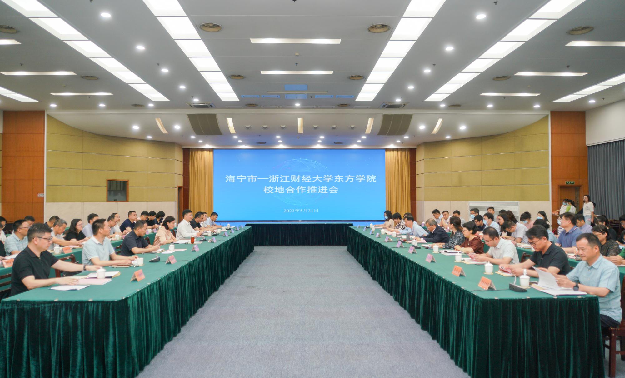 本网讯5月31日,海宁市-东方学院校地合作推进会在海宁召开。校党委副书记、校长钟晓敏,海宁市委副书记、市长许红莲,海宁市委常委、常务副市长王一鸣,海宁市副市长万成兆出席会议。海宁市相关部门领导,学校相关职能部门和东方学院负责人参加会议。