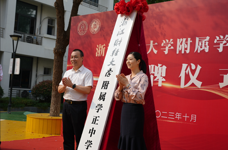 本网讯10月27日,ued体育 附属学正中学揭牌仪式在学正中学举行。校党委书记李金昌,钱塘新区管委会副主任、钱塘区人民政府副区长潘伟红为ued体育 附属学正中学揭牌。钱塘区教育局领导、学校相关部门负责人、学正中学相关负责人参加揭牌仪式。