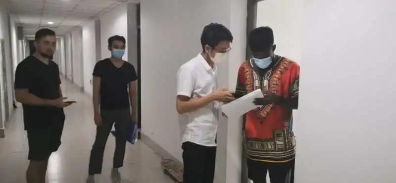 此次走访慰问,有助于全面掌握暑期在校留学生的基本情况及宿舍安全状况。通过与留学生面对面交流,了解大家的诉求和对住宿环境的意见和建议。希望留学生暑假期间继续配合校院工作,做好疫情个人防控,注意人身和财产安全,度过一个安全愉快的假期。