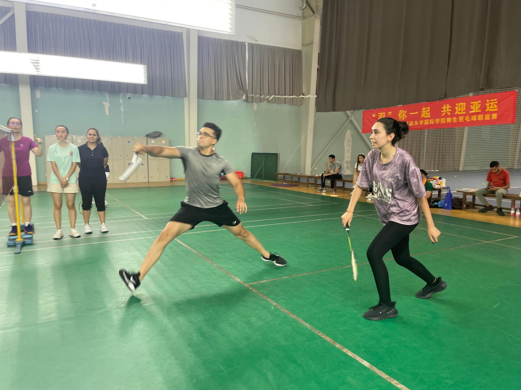 为迎接即将到来的亚运盛会,丰富国际学生的暑期生活,倡导积极向上的健康生活方式,7月14日下午,“羽”与一起,共迎亚运国际学院师生羽毛球联谊赛在学校北体育馆举行。