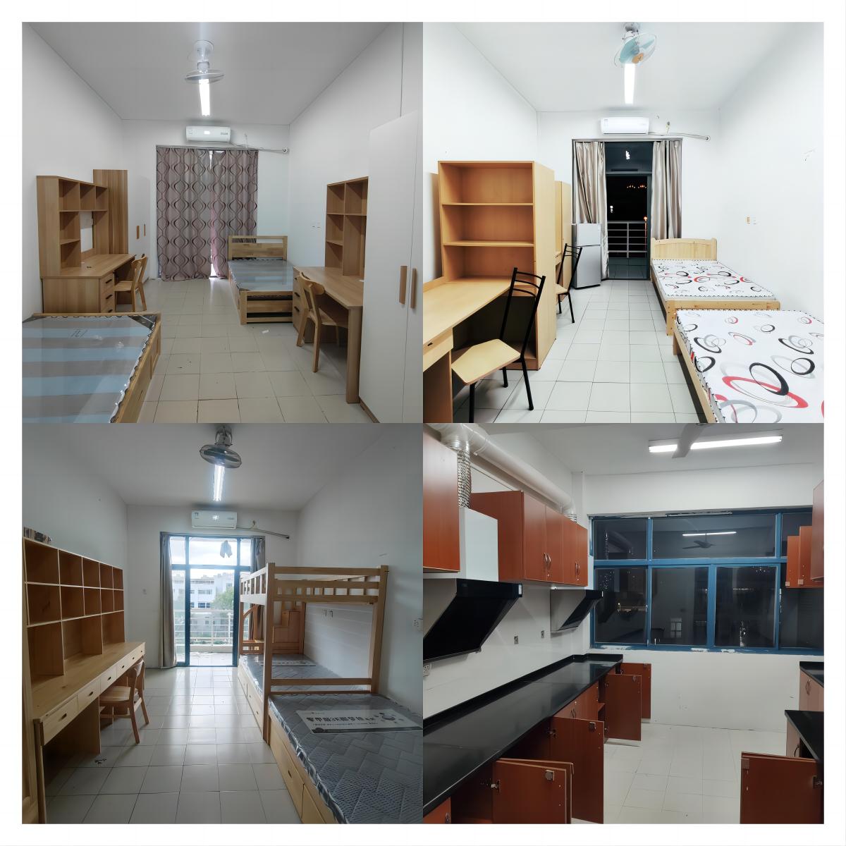 ued体育 为留学生提供校内宿舍,宿舍分双人间和三人间两种房型,每个房间配备床、床垫、桌椅、衣柜、独立卫生间、空调、洗衣机、热水、冰箱等设施,楼栋内有直饮水机、公共厨房,并配置橱柜、油烟机等,供日常烹饪、就餐使用。
