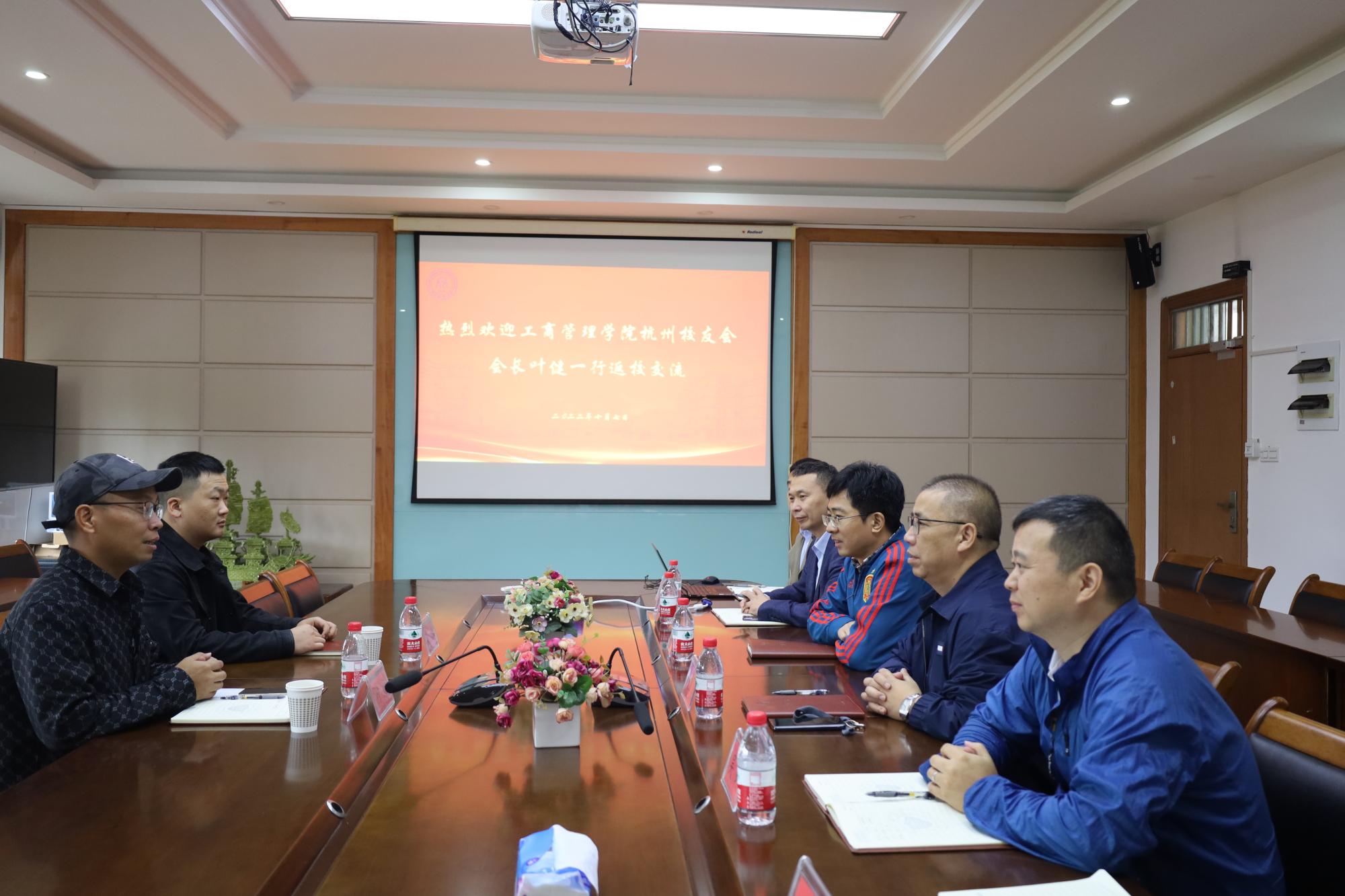 10月8日上午,学院杭州校友会会长、95市场营销班叶健一行返校交流和座谈。学院院长王建明、党委书记黄卫华、副书记吴玻、副院长张雷等出席座谈会。