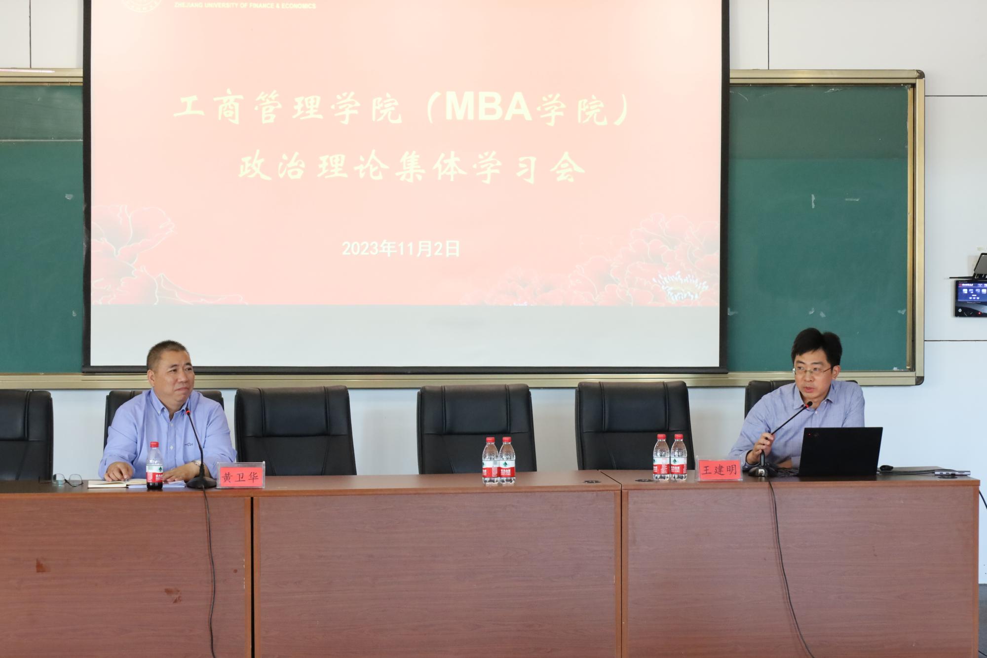 黄卫华带领大家学习了深入学习了习近平总书记考察浙江重要讲话精神、习近平文化思想。他指出,工商管理学院要始终坚持党建引领学院发展,在运行中始终把政治建设摆在首位,用习近平新时代中国特色社会主义思想武装头脑,把办学质量好、学科特色强、办学满意度高作为发展导向,把培养数智时代需要为导向的高级创新创业型工商管理人才为己任,“干在实处,走在前列,勇立潮头”,秉持“守正创新、形优速稳”的绿色管理精神,一任接一任,推动学院事业的迅速发展。