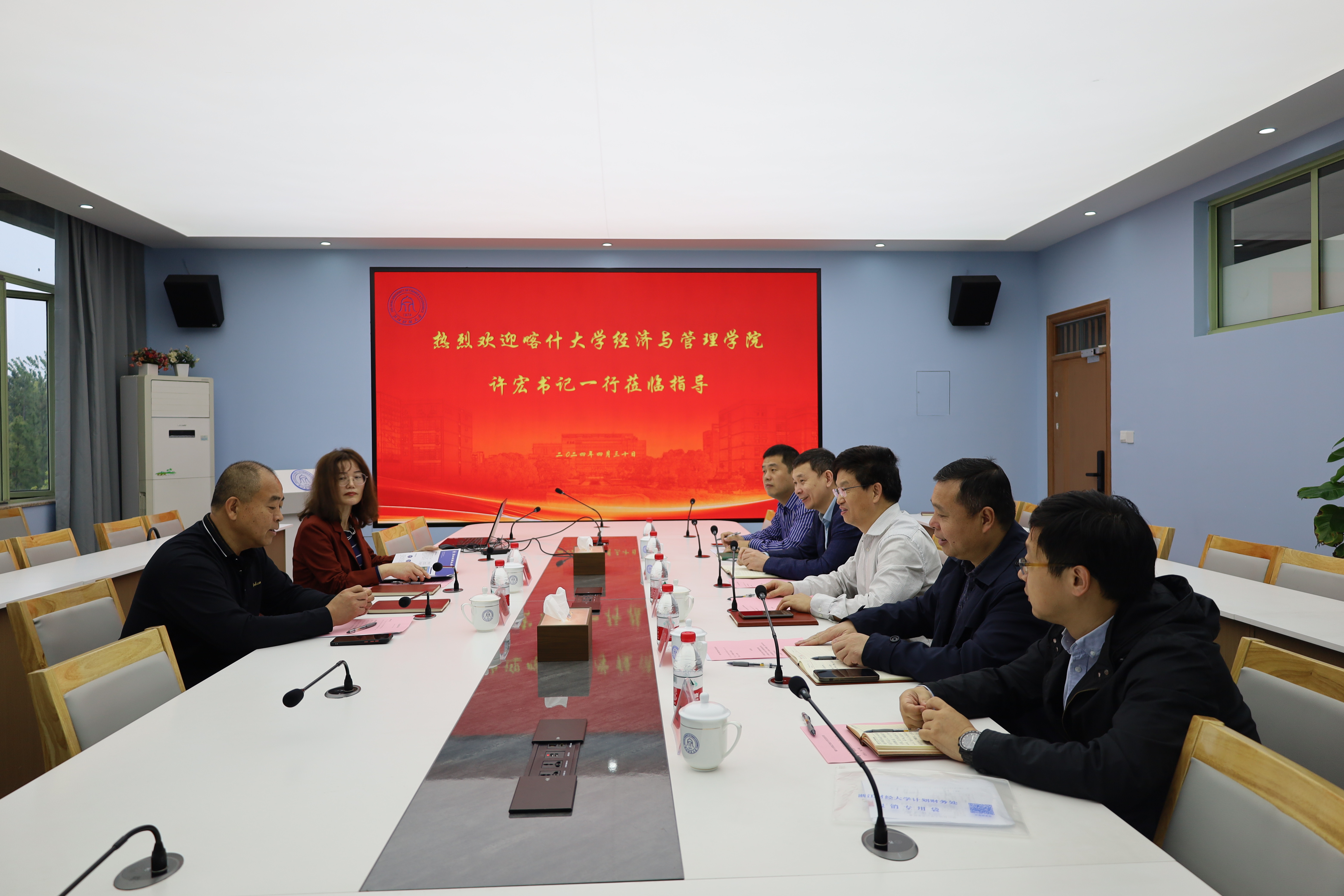 许宏对学院领导的热烈欢迎表示感谢,并介绍了喀什大学经管学院的学科建设、师资队伍、人才培养等情况。他表示,两校在科学研究、人才培养、党建共建等方面有着广阔的合作空间,希望双方能够加强交流与合作,为地方经济社会发展贡献智慧和力量。