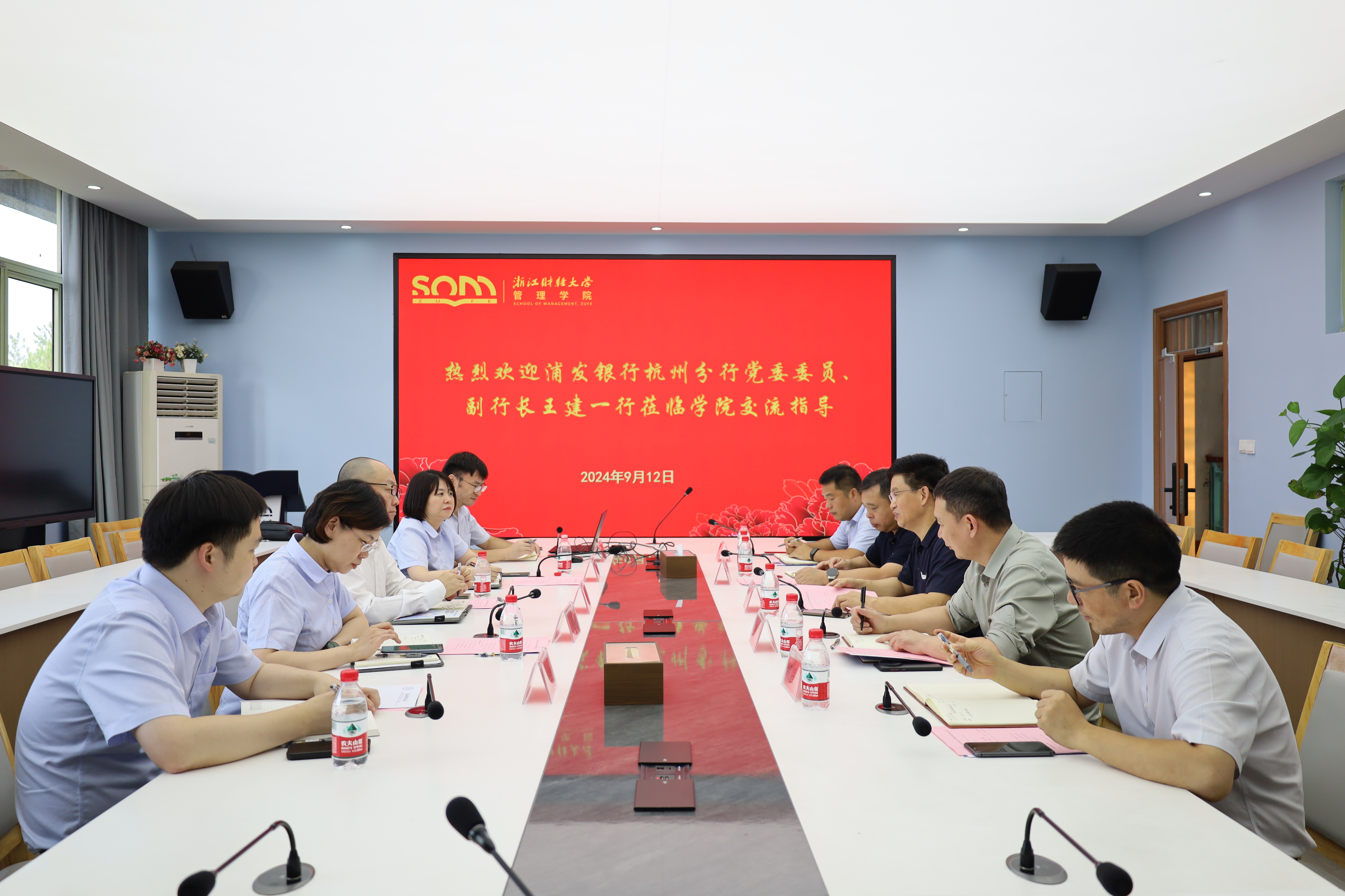 王建介绍了浦发银行及杭州分行的基本情况,感谢学校、学院多年来为浦发银行输送了大量优秀人才。希望以此次交流为契机,进一步深化务实合作,实现优势互补、合作共赢。