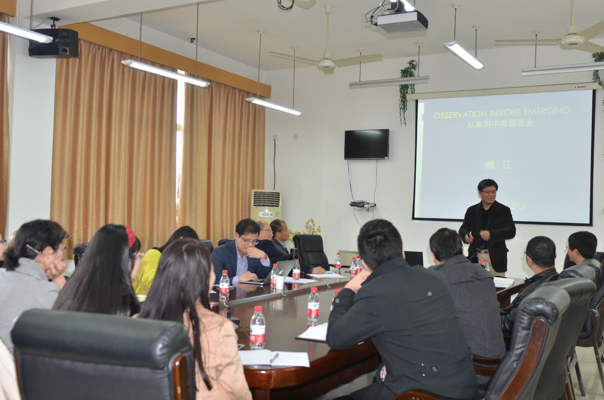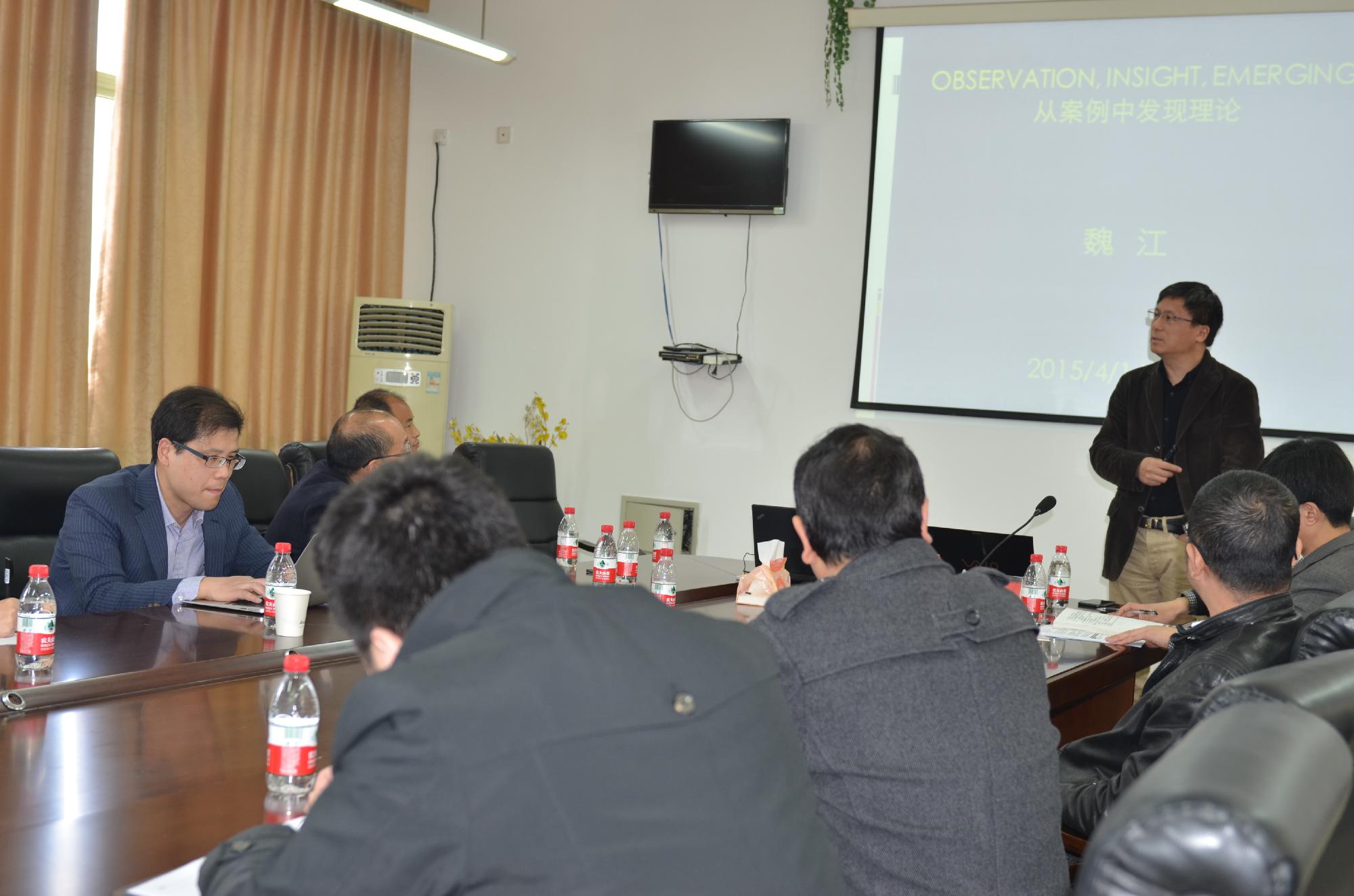 2015年4月14日下午,浙江大学管理学院教授、博士、博士生导师魏江先生应邀来我校作了一场题为“观察、思考和涌现:从案例中发现理论”的学术报告。讲座由工商管理学院院长助理王建明教授主持,工商管理学院及兄弟学院的近30名老师、研究生聆听了本次学术报告。