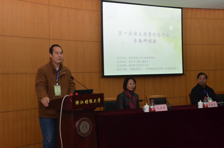 会议开幕式由工商管理学院院长助理王建明教授主持。王老师以十六个字“烟雨江南、钱塘江畔、绿水青山、共谋发展”拉开了本次专题研讨会的序幕。王老师说,本次专题研讨会是从事绿色消费行为研究的小同行第一次真正意义上的聚会,具有历史性的意义。