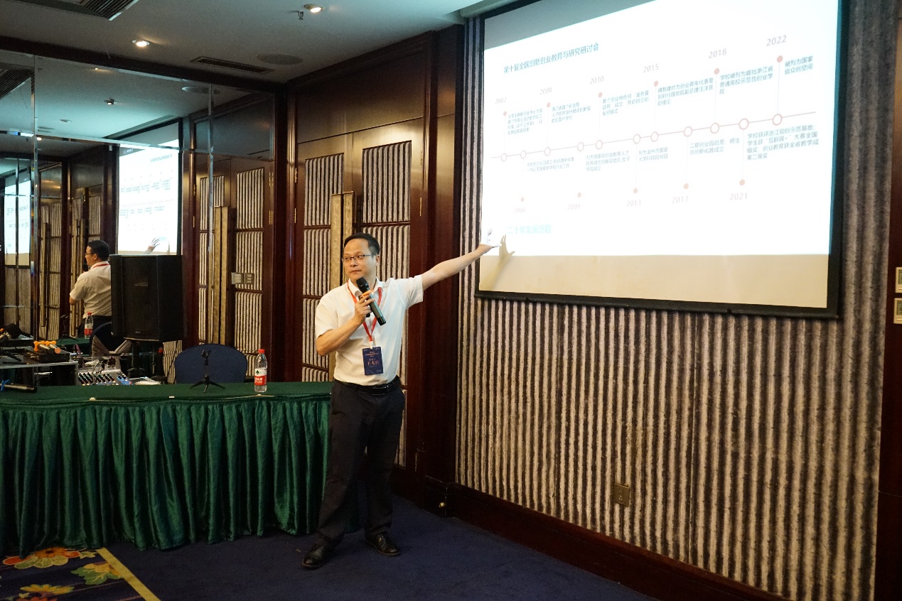 电子科技大学中山学院卢满怀老师分享主题为《思创一体、赛课结合的创新创业教育课程探索与实践》。他介绍了电子科技大学中山学院的发展史以及课程发展史。他认为,可通过赛课结合、省一流课程和品牌项目结合形成良性循环,获得学生和老师的认可。他希望未来可以回归实践教学,回归双创初衷,发现问题解决问题;提高学生课堂参与度,创造条件加强企业交流走访;开设写作课创新方法的相关课程。
