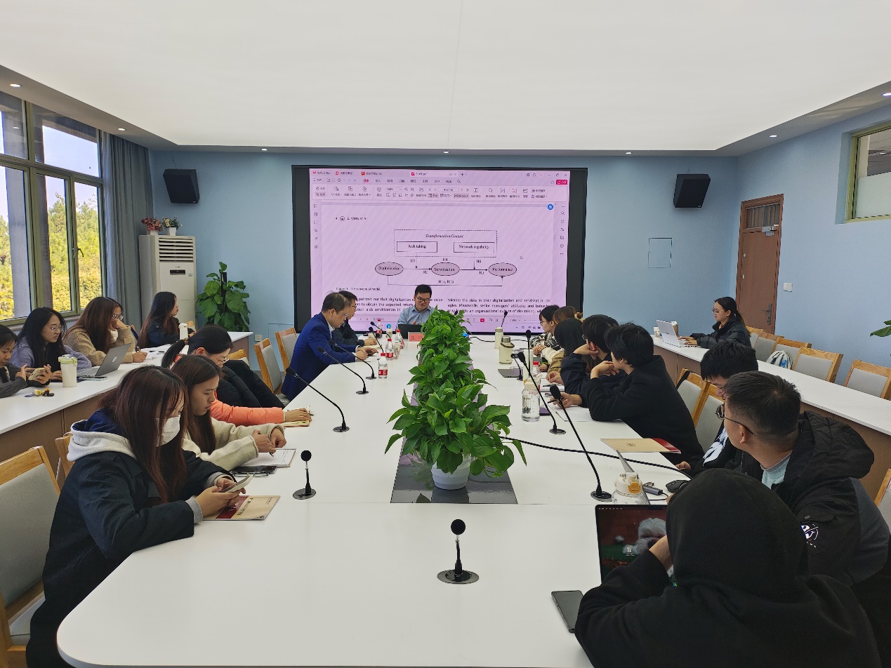 11月13日下午,下沙校区学院楼416会议室,拉夫堡大学的张涛教授为我院师生做题为《数字化转型对企业财务绩效的影响——以服务为中介》的学术报告,副院长戴维奇教授主持此次讲座。
