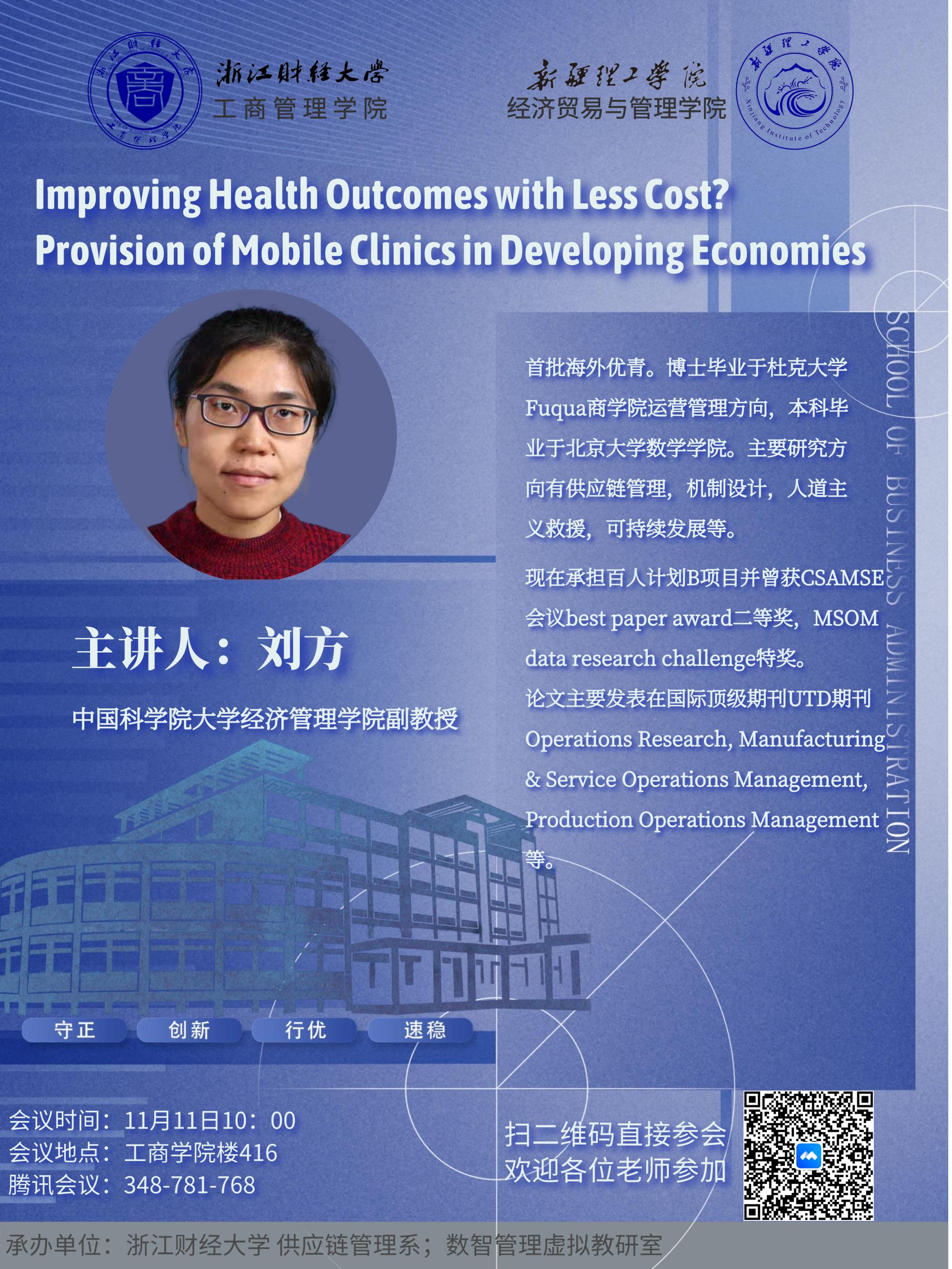 《讲座预告》刘方:Improving Health Outcomes with Less Cost? Provision of Mobile Clinics in Developing Economies