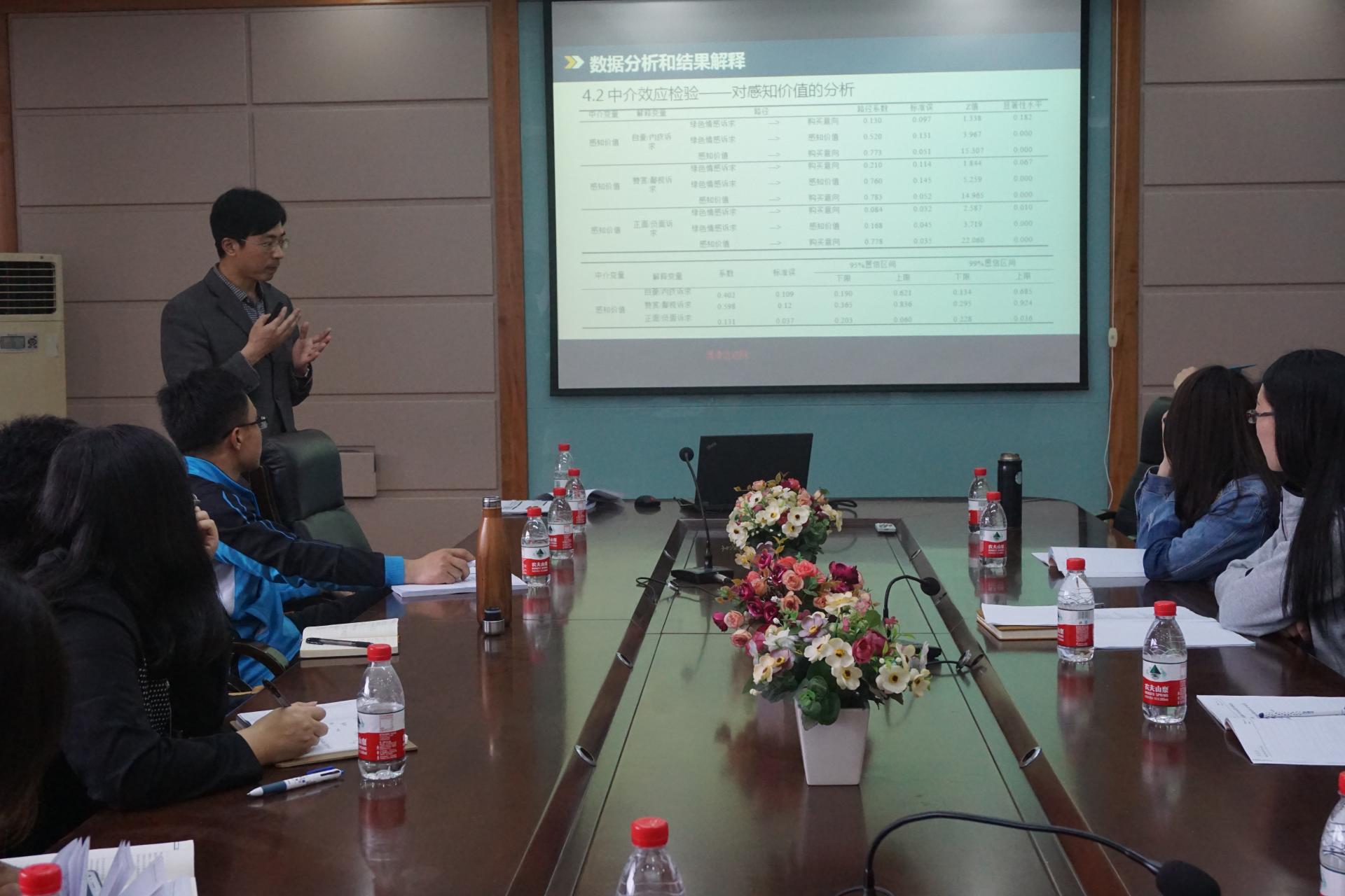 426日下午,我院王建明教授在工商管理学院楼410会议室做了题为《负能量也是正能量?——绿色情感诉求对绿色购买决策过程的影响机制》的学术报告,来自工商管理学院、外国语学院、《财经论丛》编辑部等单位的十余位教师、研究生参加了本次学术会议。