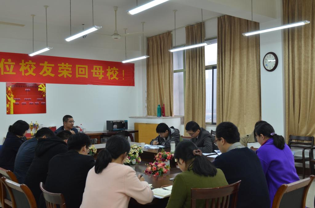 11月19日下午1点半至3点在学院楼416会议室,学校“三严三实”专题教育督查第八组对我院开展的“三严三实”专题教育活动进行了督查。党总支书记尤利群代表学院向督查组汇报了我院“三严三实”第一、二专题教育活动开展情况与下一阶段学习研讨计划安排,党支部建设、党员发展、培养、教育与管理等基础党建工作和创新做法。督查组举行了教工和学生支部书记座谈会,询问了学院党总支“三严三实”专题教育活动开展情况,支部支部“三会一课”和党员发展、培养情况,督查组还检查各项工作材料。