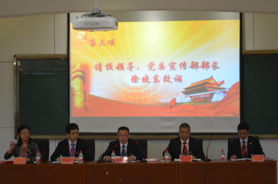 会议由工商管理学院党委副书记谢敏同志主持,大会在雄壮的国歌声中拉开序幕。工商管理学院院长董进才同志首先为本次党员大会致开幕词。校党委委员、党委宣传部部长徐晓东同志则代表学校党委为大会致辞,徐部长首先对工商管理学院党委过去三年取得的成绩表示了充分的肯定,并在此基础上提出了“着力深化两学一做教育”、“着力明晰学院的发展目标”、“着力破解发展中的深层次问题”、“着力加强领导班子的建设”等四点要求。