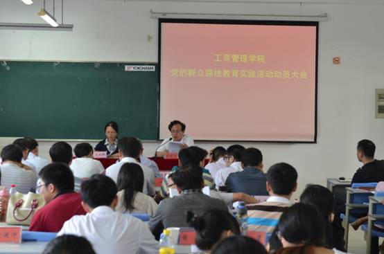 09月10日下午,工商管理学院群众路线教育实践活动动员大会在学院楼411召开,以副校长黄建新为组长的督导组一行4人出席了会议,学院全体教职员工及部分学生党员代表参加了会议,会议由学院总支书记尤利群主持。