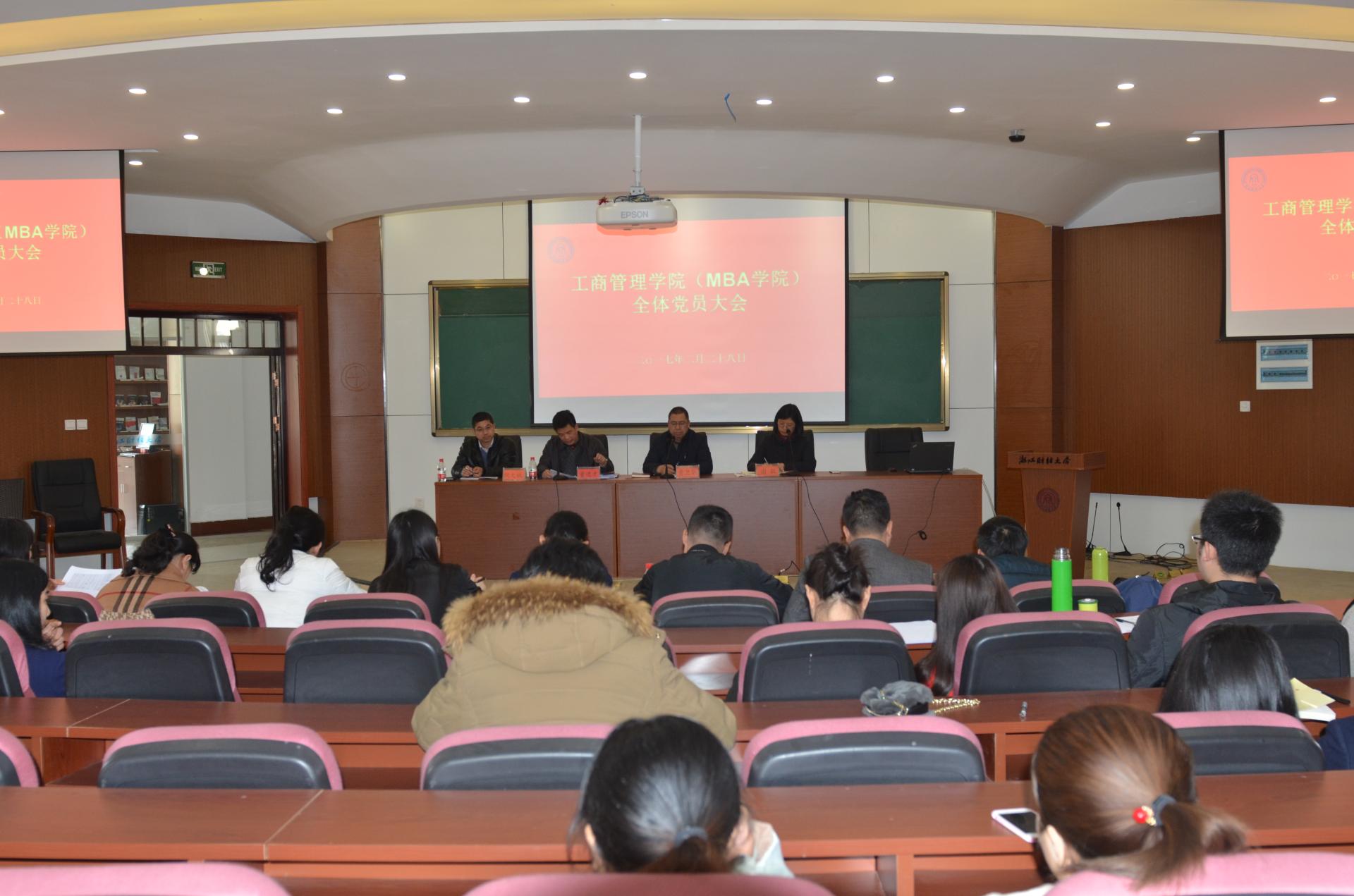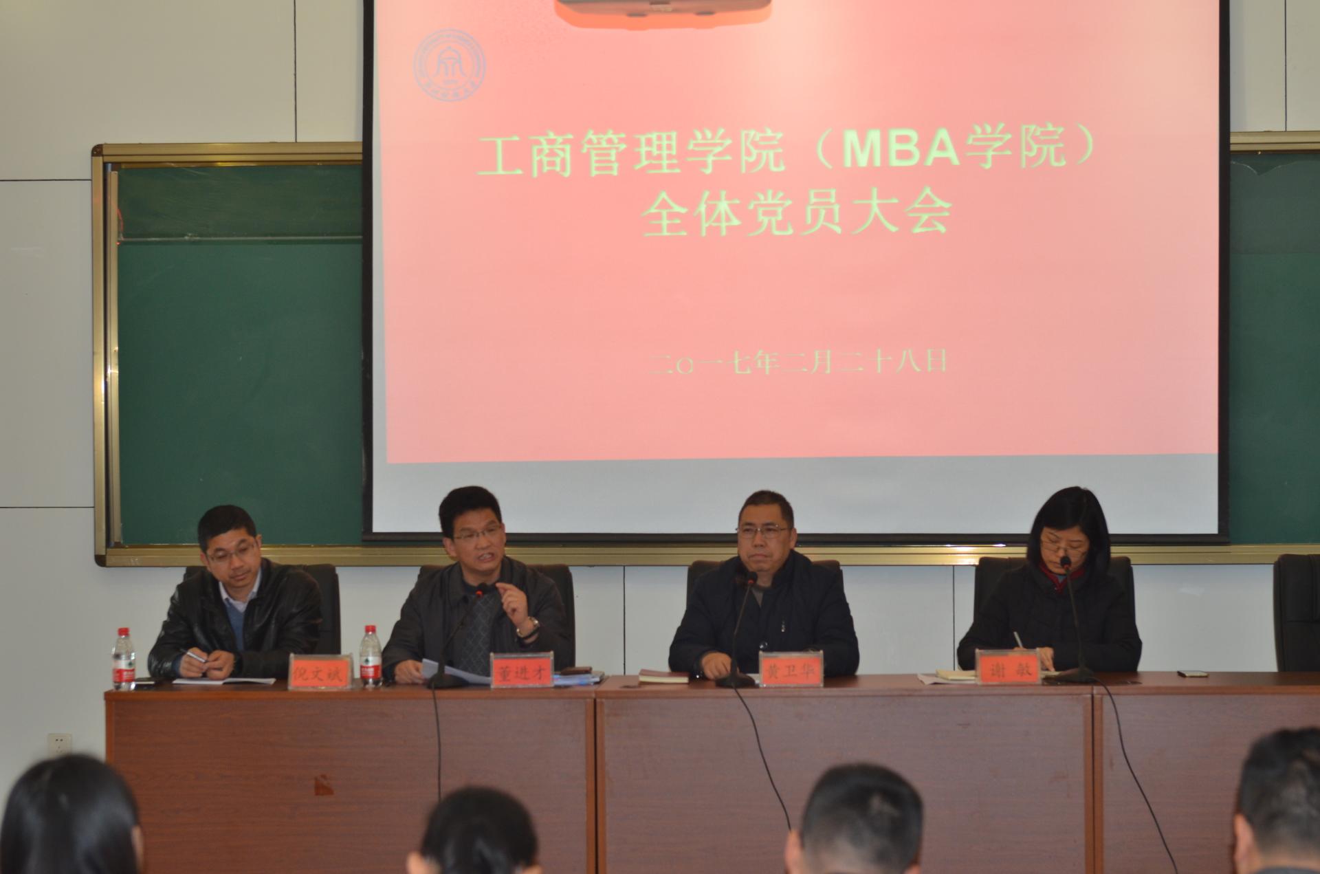 2017年2月28日下午,ued体育 工商管理学院(MBA学院)党员大会在学院楼217会议室召开。院长董进才、党委书记黄卫华、党委副书记谢敏、副院长倪文斌等学院领导、学院教职工党员及研究生党员、各本科生支部委员等参加了本次会议,会议由学院党委书记黄卫华主持。
