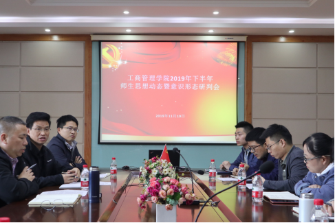 为及时了解和掌握师生思想动态,进一步加强学院意识形态工作。工商管理学院于11月19日在410会议室召开了师生思想动态暨意识形态研判会。会议由院党委书记黄卫华主持,院长董进才、各支部书记参加了此次会议。