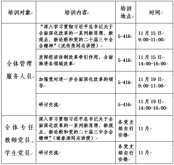 根据学校《关于组织开展基层党员干部学习贯彻党的二十届三中全会精神集中培训的通知》要求,学院将分类开展以下培训工作: