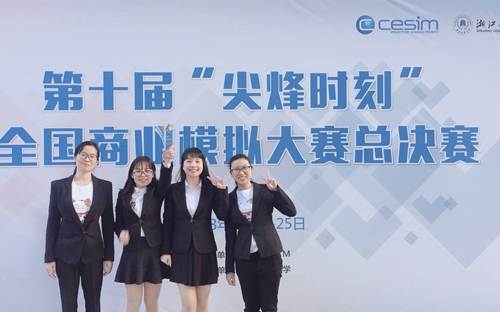 3月23日至25日,由教育部中教国际教育中心、芬兰CESIM教育机构主办,知名度颇高的国际性商业模拟赛“尖峰时刻”中国区总决赛在杭州顺利举行。经过三天的激烈角逐,来自工商管理学院的郭伊华、胡雨婷,财税学院的金依宁、会计学院的赵慧倩四位同学组成的“招财猫”队(指导教师:应瑛),在全国决赛中表现出色,荣获本科组二等奖。