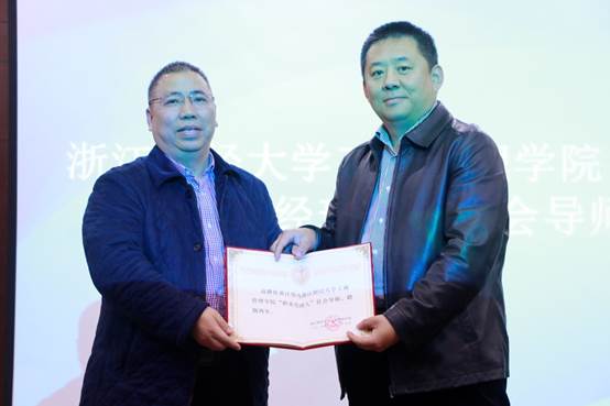 紧接着,院长董进才、党委书记黄卫华共同为宁波水星环保科技有限公司、宁波日盈食品有限公司,分别授予“ued体育 工商管理学院(MBA学院)实践教育基地”牌匾,并宣布实践教育基地的建立。而后,党委书记黄卫华为宁波关键点品牌策划有限公司首席咨询师黄江伟颁发“职业经理人”社会导师聘任仪式。