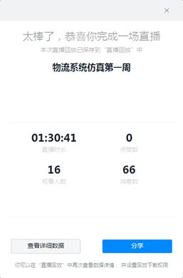 《物流系统仿真》是通过构建仿真模型来研究物流系统的一门课,通过物流系统仿真基本知识和若干仿真实操的组合式学习,帮助学生加深对物流系统的结构、功能以及物流系统分析与优化等方面知识的理解,培养学生采用系统仿真方法解决实际问题的能力,是物流管理专业学生的专业选修课。考虑到钉钉上传文件不过期、发送内容可爬楼、往期直播可回放等优点,本次网络直播授课采用钉钉群课堂,但为应对直播平台卡顿等突发情况的发生,仍然建立了QQ群以备不时之需。由于师生在直播方面都缺乏相关经验,故提前进行了测试,包括画面、声音和直播回放等,确保正式授课时不因此类问题而耽误时间。
