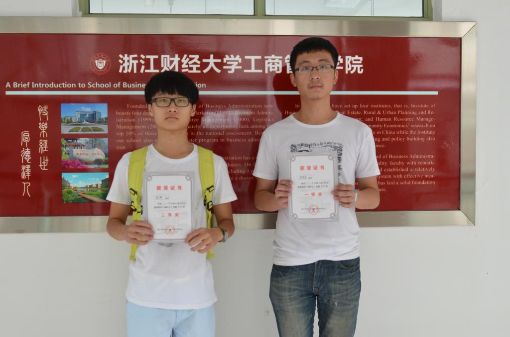 我院12工商2班尤择业,14工商2应晟两位同学在2015年浙江省大学生高等数学(微积分)竞赛经管类比赛中分别荣获一二等奖的佳绩,特此祝贺!