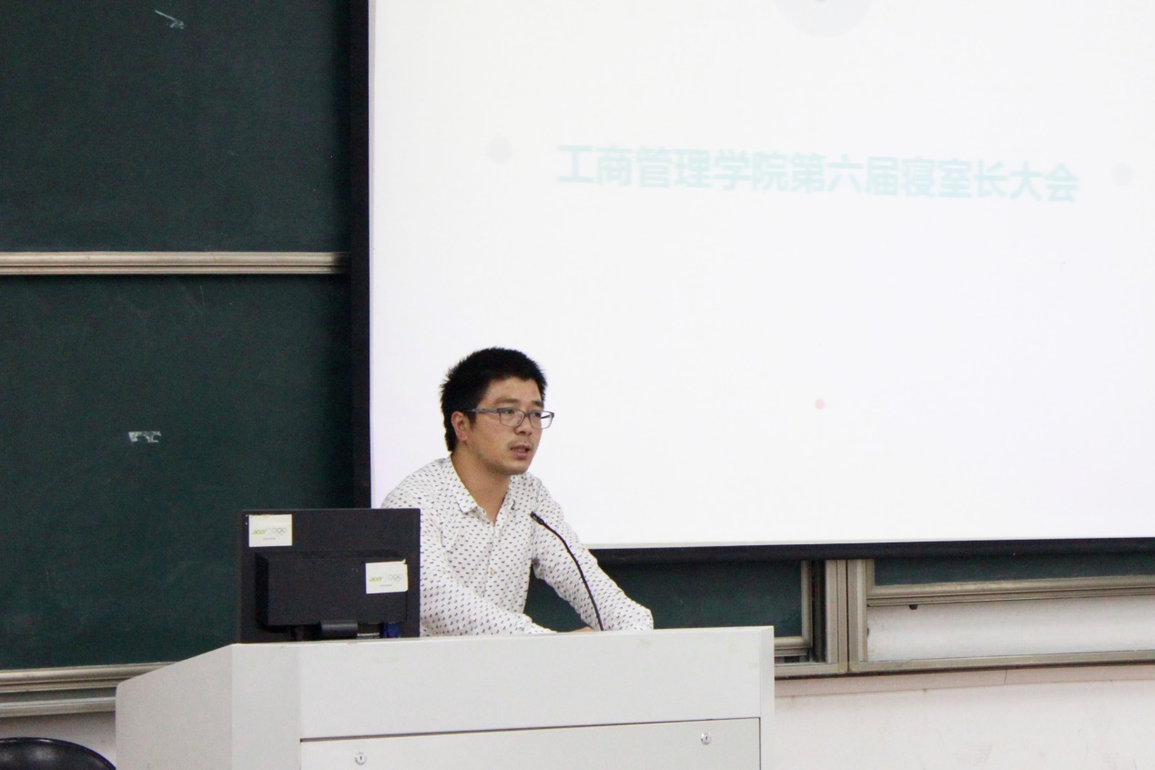 2015年9月22日15时,工商管理学院于115教室召开了第六届寝室长大会,参加本次会议的有工商管理学院学办主任胡星平老师,团委书记刘远琳老师,学生会生活部部长及各寝室长。
