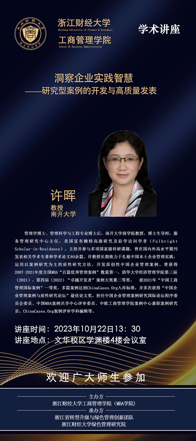 【讲座预告】许晖教授:洞察企业实践智慧——研究型案例的开发与高质量发表