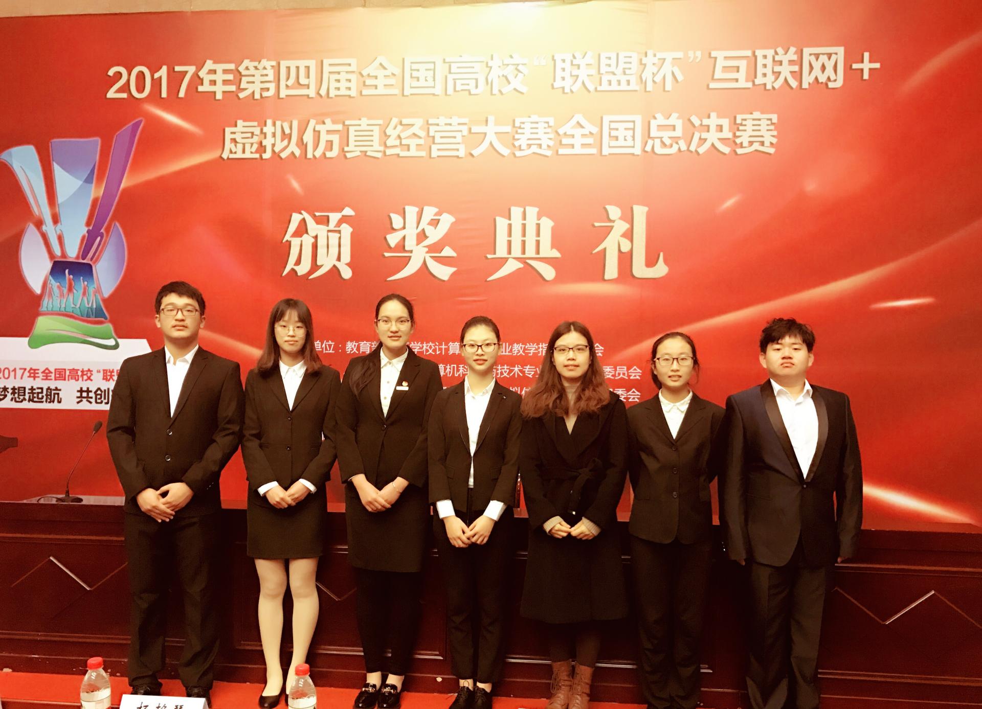 2017年11月31日-12月2日,第四届“联盟杯”互联网+虚拟仿真经营大赛全国总决赛在四川外国语大学举行。我校代表队(忻瑜萱、林高霆、王宇佳、林煜南、陈丹璐、郑伊凡,指导教师:李晶)在全国总决赛中再创佳绩,荣获团体二等奖。