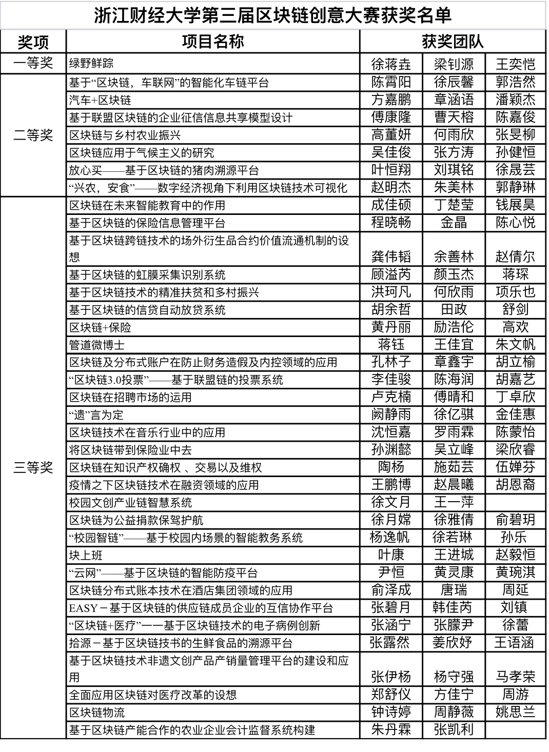 本次大赛由校内学生跨学院、跨专业、跨年级、自由组队,来自我校金融、财税、经济、会计、公管、工商、信工、数科、法学院等9个学院79组团队237位学生参赛。参赛各团队结合大学生的http uedw8.me 及自身专业特点,将区块链技术在各个行业领域进行了运用创意的发挥,涌现了一大批具有鲜明时代特色、创意与落地可行性俱佳的文案,其中不乏一些已经落地正在实施的项目。
