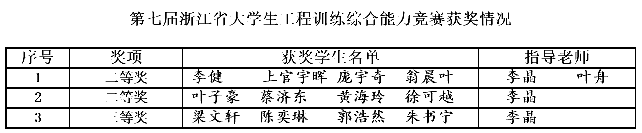 比赛最终决出一等奖队伍7支,二等奖队伍14支,三等队伍25支。我校共有3支学生队伍参加比赛,其中2支队伍以小组第二获得二等奖并进入浙江省排位赛,1支队伍获得三等奖。