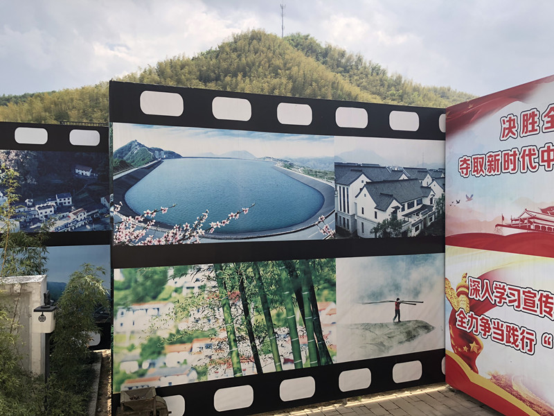 简洁的两山汇报片、丰富的图片墙生动的展示了余村在发展休闲经济、打造绿化示范村以及现代林业观光园区等方面取得的成果,也展示了余村通过践行“两山”理念实现了经济发展和生态保护双赢的局面。