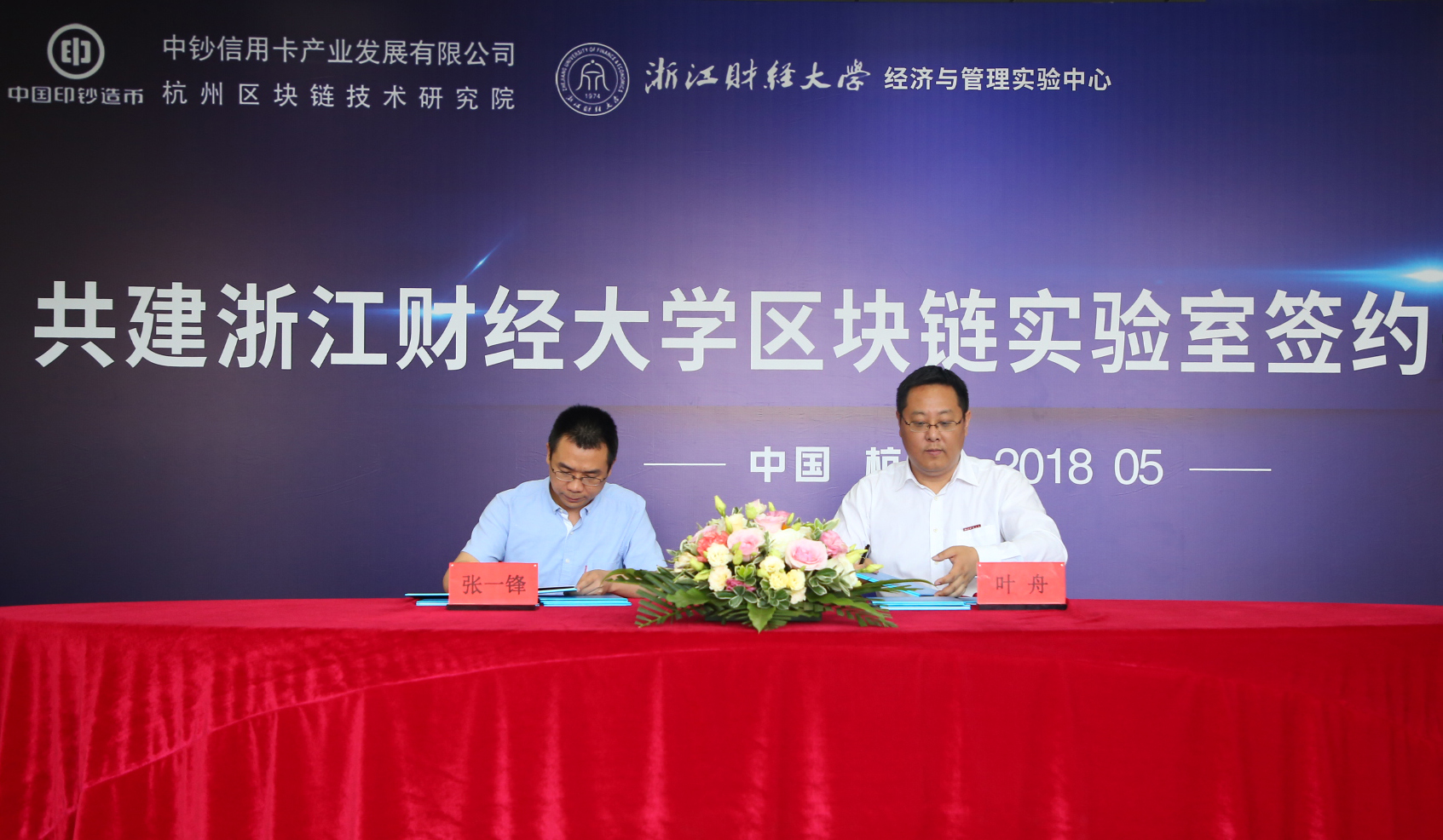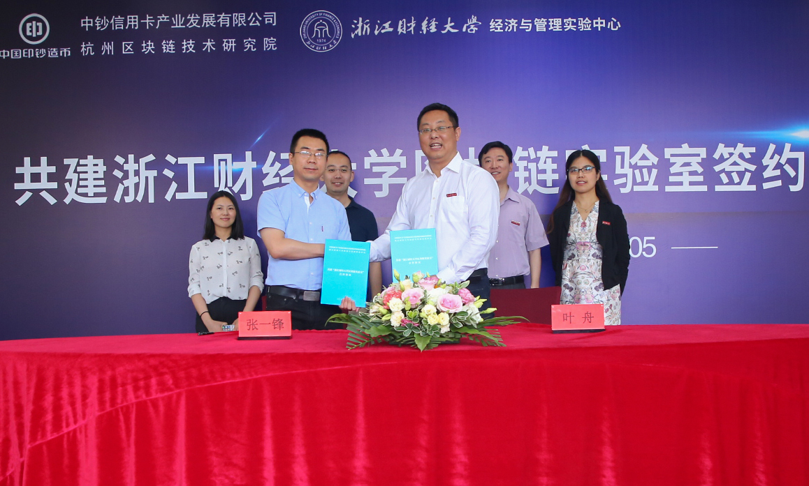 5月15日上午,ued体育 区块链实验室签约暨揭牌仪式在我校下沙校区举行。中钞信用卡产业发展有限公司杭州区块链研究院(简称“中钞区块链技术研究院”)张一锋院长、侯德光总工程师,我校经济与管理实验中心主任叶舟等出席签约及揭牌仪式。