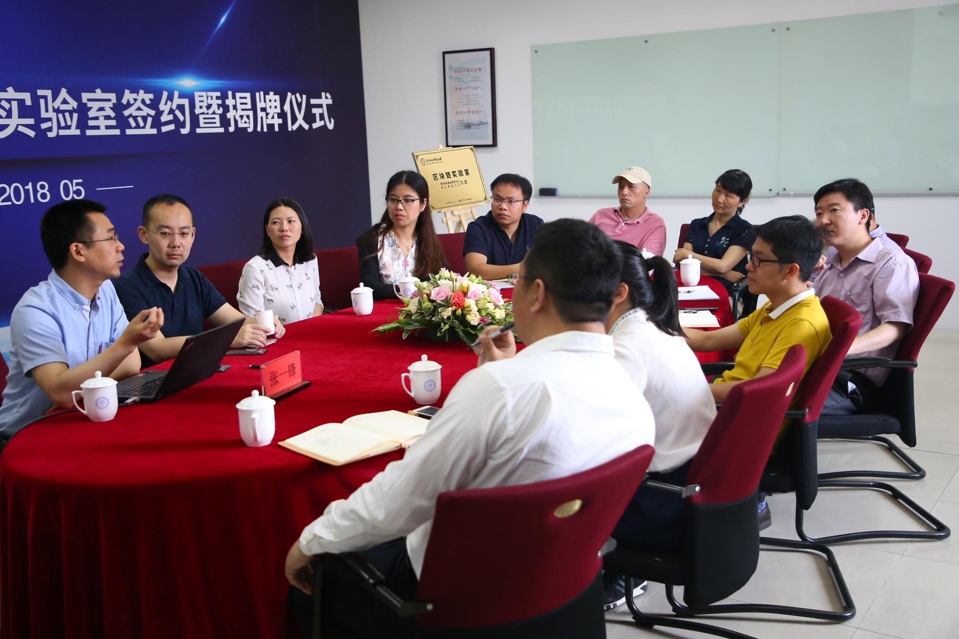 随后,双方共同进行了“ued体育 区块链实验室”揭牌仪式。