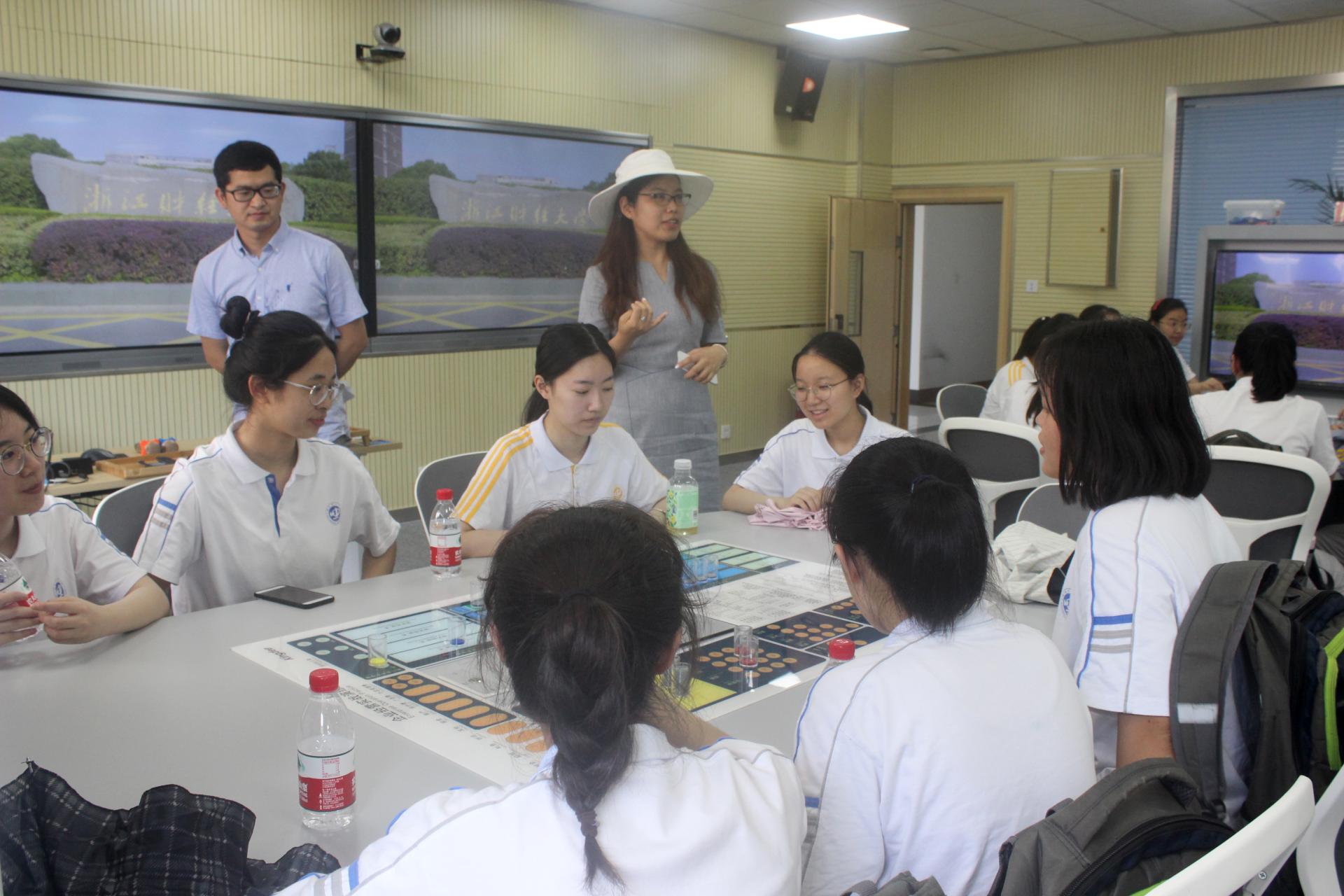 当天,高中生们兴致勃勃来到ued体育 经济与管理实验中心,在中心李晶老师的带领下参观多组织集团经营对抗实验室、智慧沙盘实验室,感受体验《ERP模拟演练》这门我校经管类专业的特色实验实践课程;走进现代金融实验教学中心,体验一机三屏的模拟股市环境,初步了解现代金融量化投资建模的理念。高中生们被实验中心的教学环境深深吸引,聚精会神地聆听介绍,动手体验ERP沙盘,并与师兄师姐们进行了深入地沟通交流,了解课程相关的专业知识、以及我校选修课程设置等各方面情况,为以后填报志愿选择专业做好铺垫。随后,高中生们还参观了校史馆、图书馆、体育馆等校园特色建筑,沿途美景目接不暇。