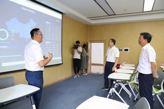 在大数据实验室,陈根芳听取了数据科学学院院长洪兴建教授关于实验室架构、平台、规划等方面的情况汇报,以及我校在财税、金融、土地管理等领域开展大数据应用研究的情况,还听取了经济与管理实验中心主任叶舟关于应用区块链技术培养财经类创新创业人才情况的汇报。