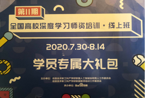 7月30日至8月14日,由教育部、工业和信息化部指导的信息技术新工科产学研联盟人工智能协同育人工作委员会和教师培训工作委员会联合主办,百度承办的“2020全国高校深度学习师资培训班”第十一期在线上如期开班,来自全国近百所高校的近200余名一线教师齐聚线上完成了为期十天的网络直播课程学习,人数创往期新高。我中心石向荣主任、郑胄强老师参加了本次培训班。