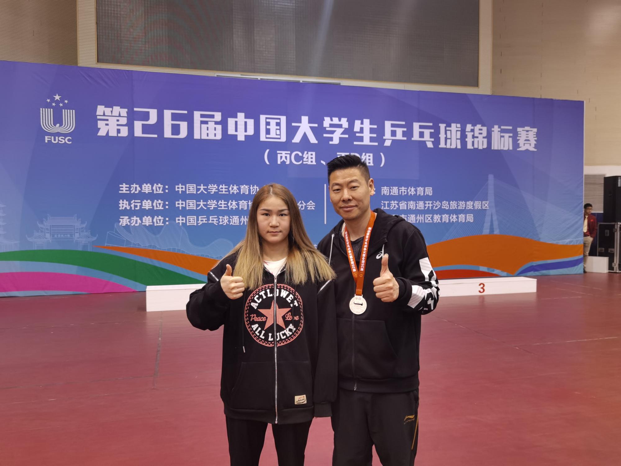 4月8日至14日,第26届中国大学生乒乓球锦标赛(丙C组、丙D组)在江苏南通举行。我校薛宇媛同学在赛场上果决冷静,顽强拼搏,勇夺丙D组女单亚军,创造了我校在该项目的历史最好成绩,并获得世界大学生运动会中国代表团选拔赛资格。