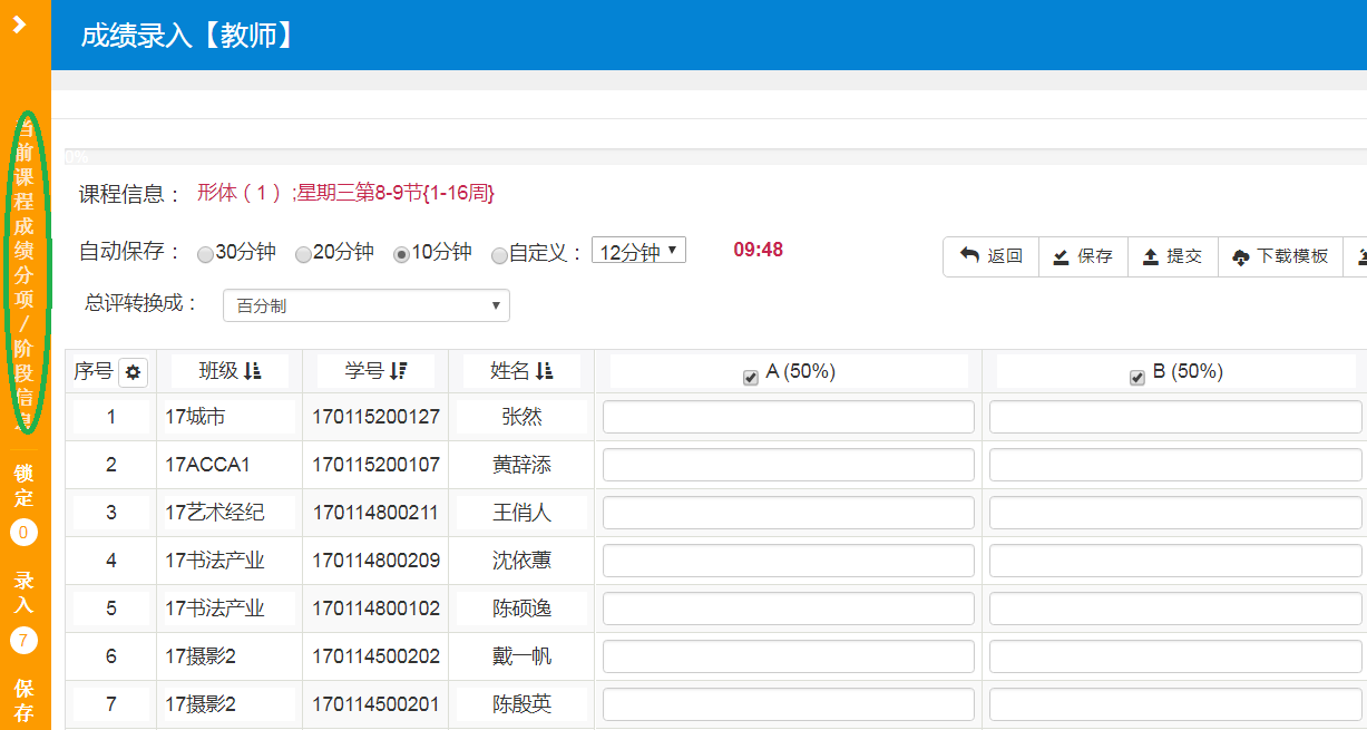 4、成绩录入解锁:马老师(电话:87557470,88470)