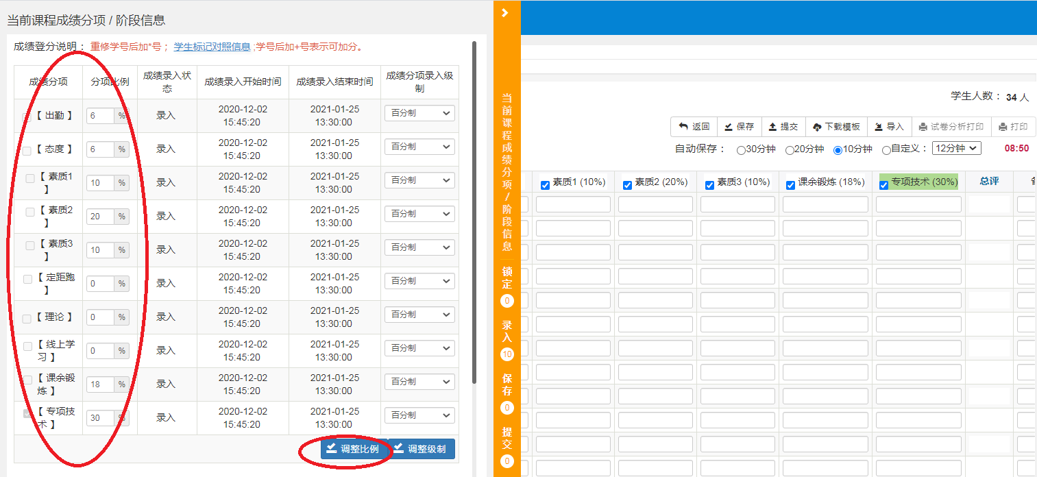 5、设置比例后,即可输入成绩,也可选择【下载模板】输入,然后【导入】