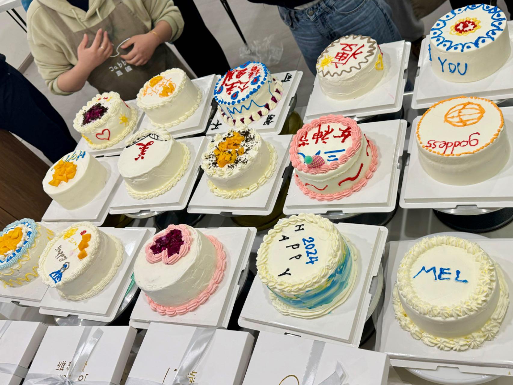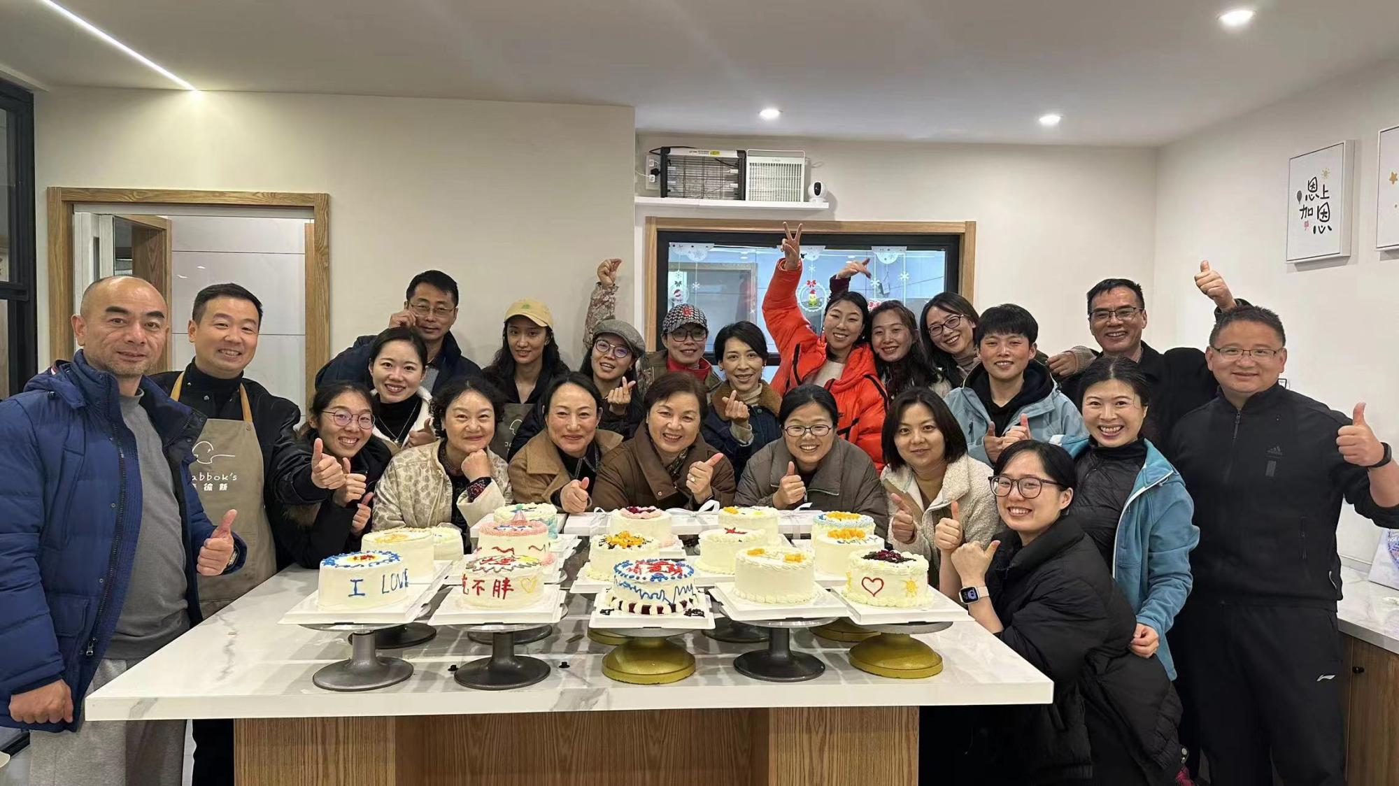 摆放水果、抹奶油、裱花装饰……女教职工们精心设计,大胆创新。在双双巧手之下,蛋糕逐渐成形,可爱精致的造型抚慰了工作的辛劳,现场弥漫着“温暖、快乐、团结、幸福”的香甜气息。