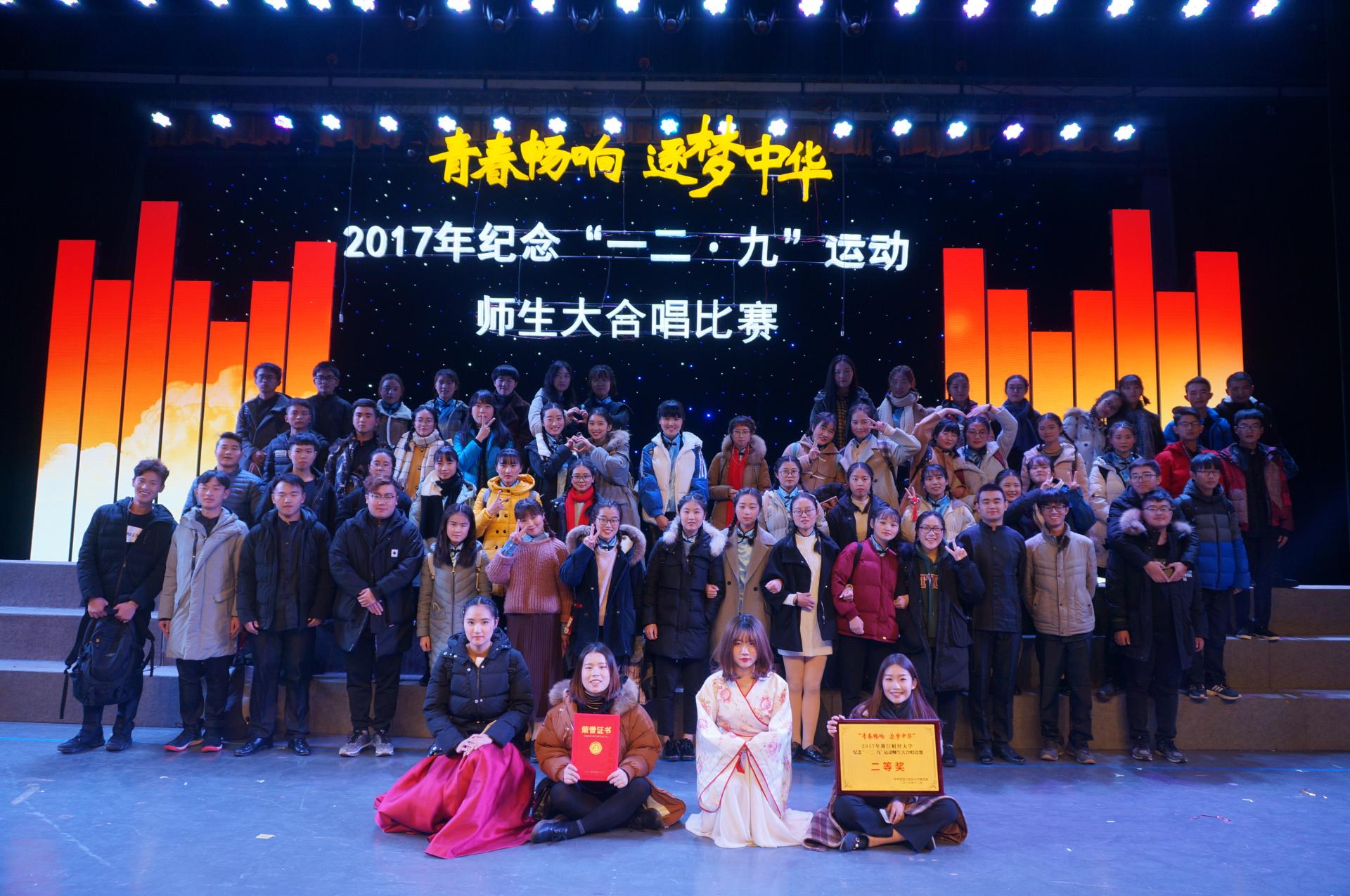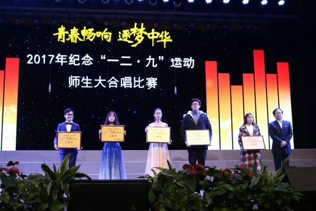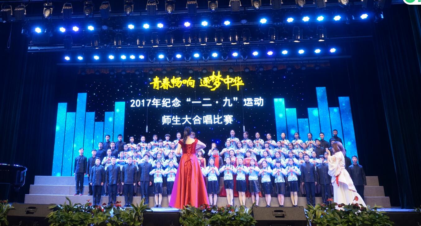 12月12日下午,为弘扬革命精神,缅怀革命先烈,我校“青春畅响 逐梦中华”纪念“一二·九”运动师生大合唱比赛在文化中心隆重举行。由我院贾莉、姬宇鹏、陈婉玉、谢琳、胡恺等5名教师和76名外语学子组成的参赛队凭借出色表现,以总分第三的佳绩荣获二等奖和最佳舞台效果奖。
