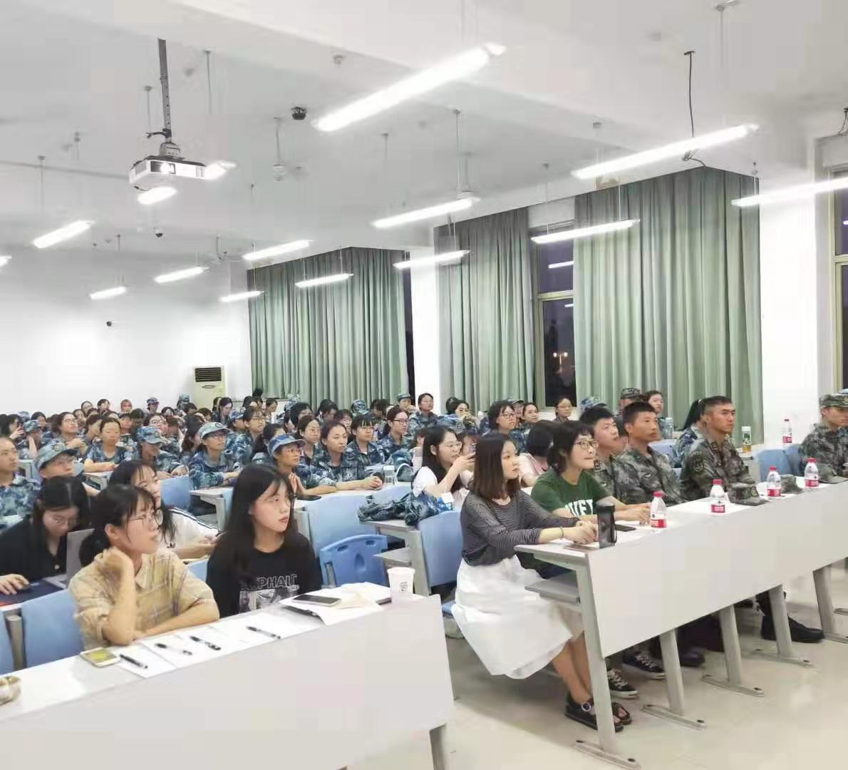 9月6日晚6:30,2019级学生军训国防演讲赛在学院楼205教室拉开帷幕。三位教官、2019级新生辅导员陈思佳老师和班导代表葛雨洋同学担任比赛评委,2019级全体参训学生和各班辅导员助理到场旁听。