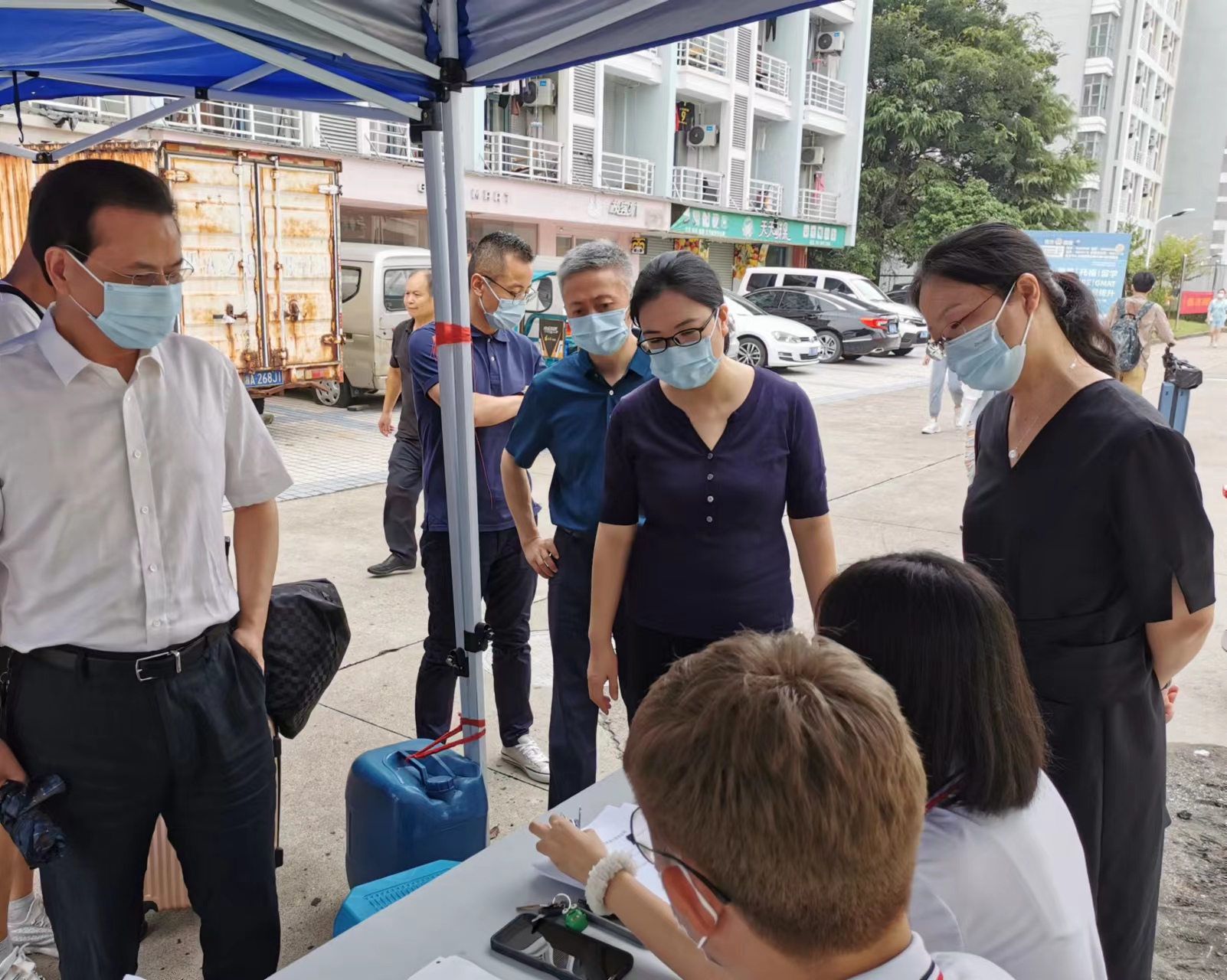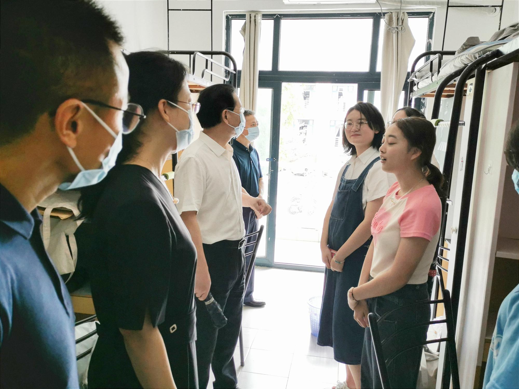 为了解新生入学情况,院长黎昌抱、党委书记王景、副院长曹道根、党委副书记李颂、副院长杨小龙一行前往迎新服务点与新生宿舍看望。
