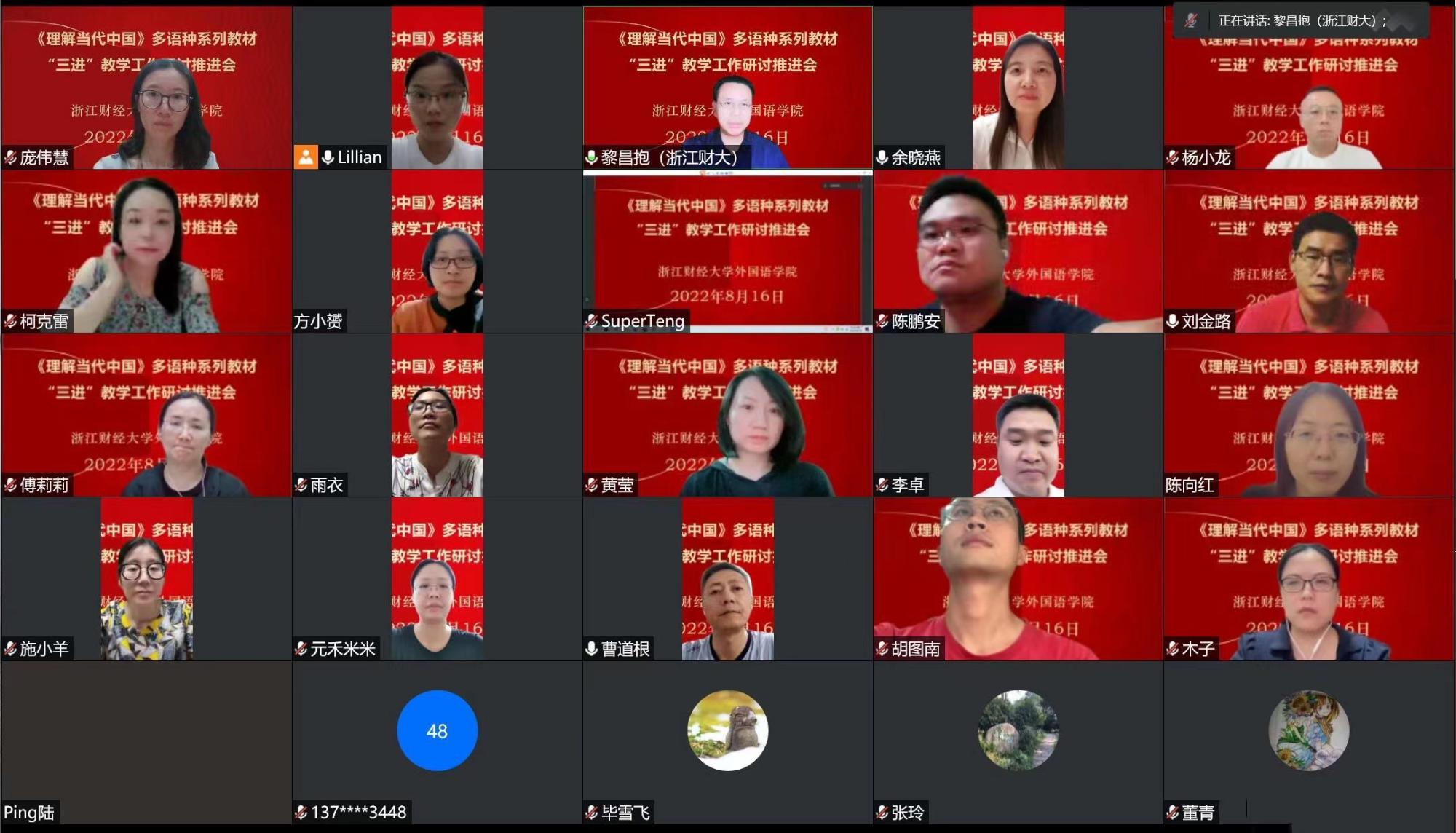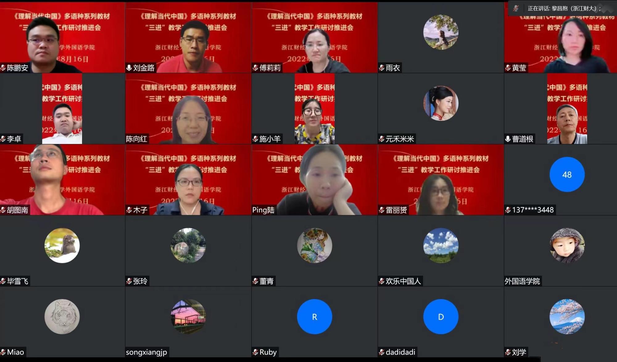 为全面推进《习近平谈治国理政》多语种版本进高校进教材进课堂工作,近日,学院在线召开《理解当代中国》多语种系列教材“三进”工作研讨推进会。学院全体班子成员及三十多位专业老师参加会议。