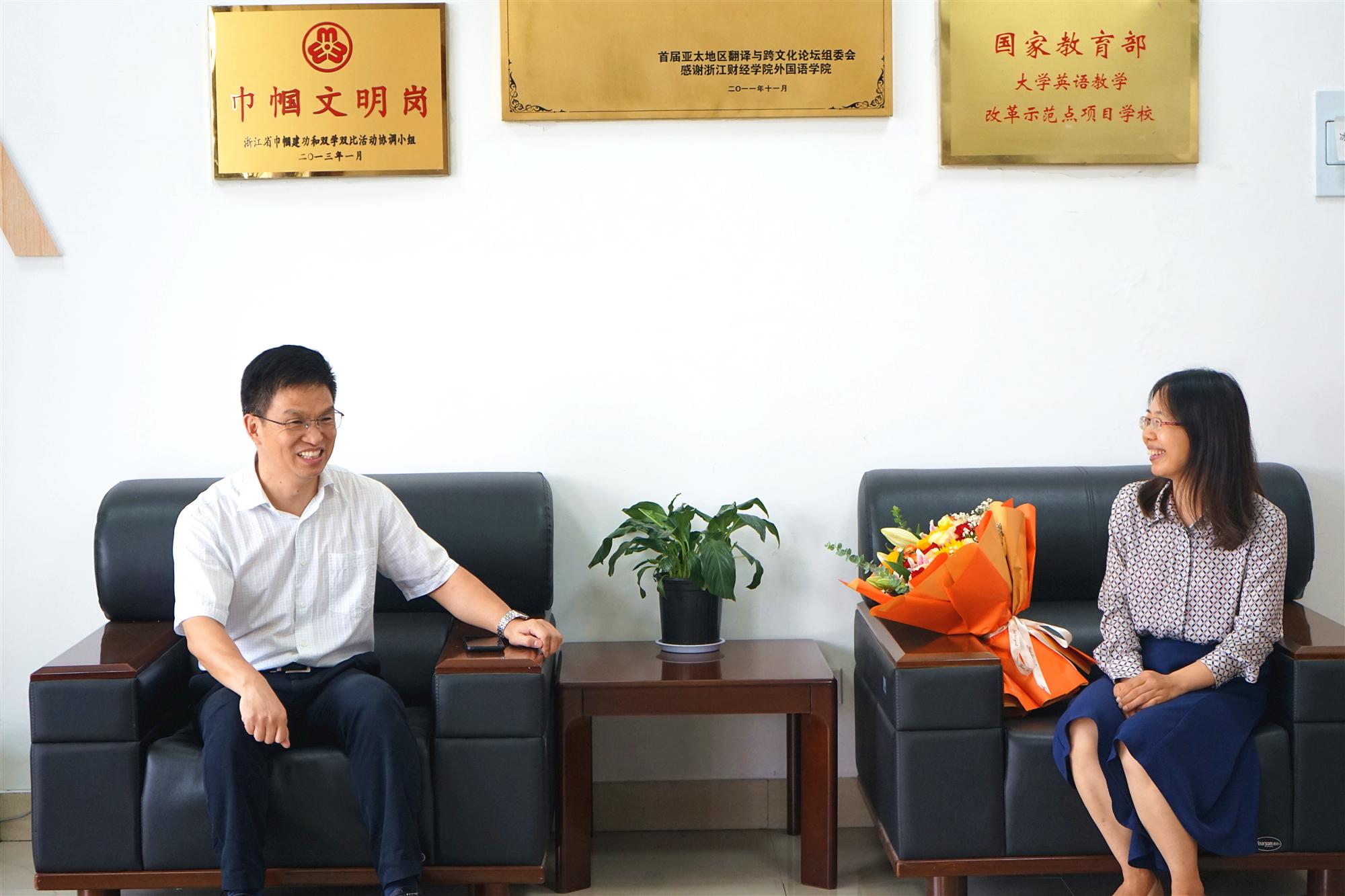 董校长对陈老师为学校发展作出的贡献表示感谢,感谢她数十年如一日地在教学、科研第一线的辛勤付出以及在平凡的岗位上取得的优秀业绩。董校长还关切询问了陈老师的生活和工作情况,鼓励学院组织像陈老师一样的资深教师搭建教学团队投身教育教学改革创新工作。同时,董校长还倾听学院对学校人才建设发展的意见和建议,他指出人才工作对学校发展至关重要,学校将继续为人才发展创造良好环境,不断提升人才服务质量,继续为教师提供更好的平台,创造更多的发展机会。